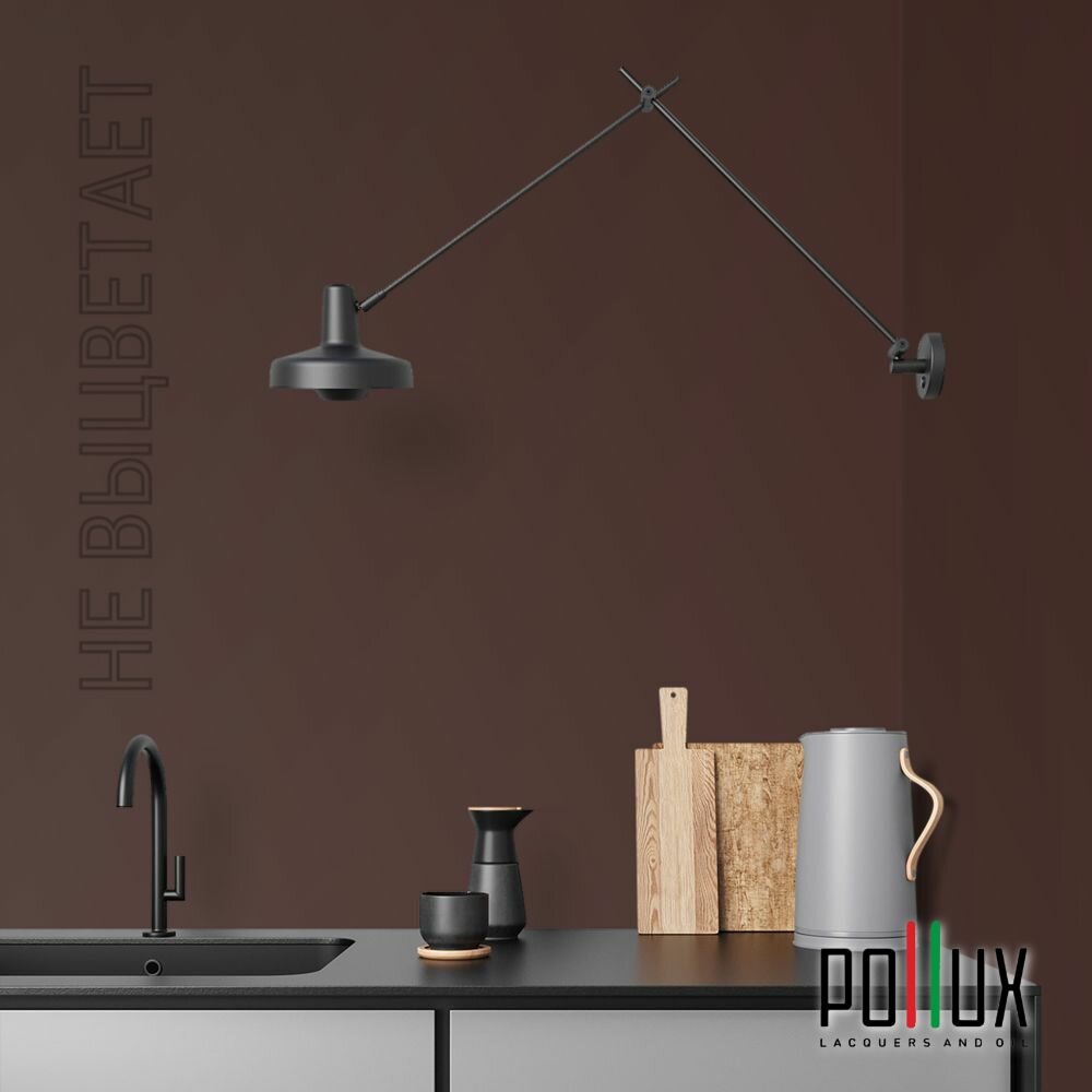 Краска моющаяся интерьерная для стен и потолков, Pollux INTERIOR без запаха, быстросохнущая, акриловая, матовое покрытие, цвет NCS S 7020-Y90R, 1л.
