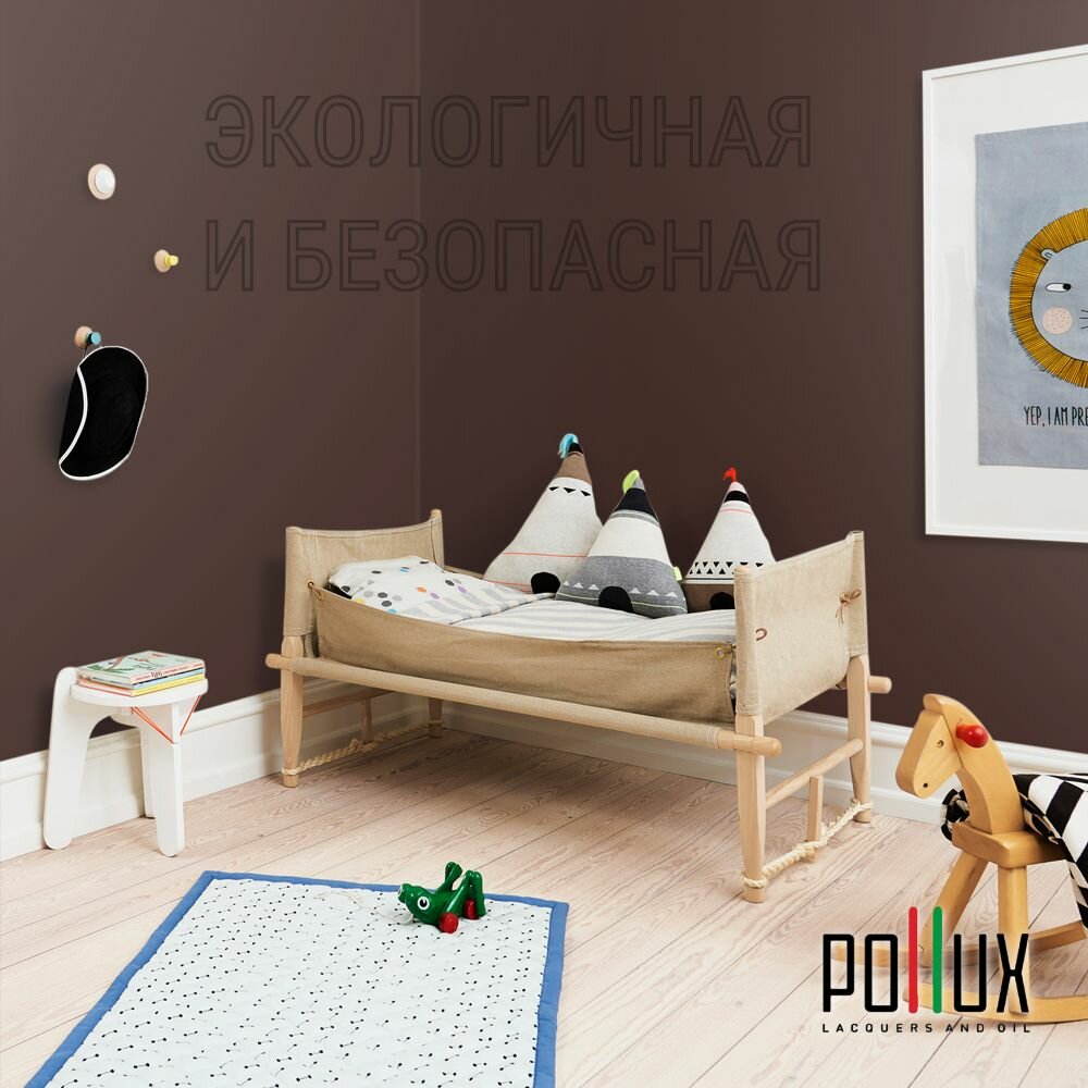 Краска моющаяся интерьерная для стен и потолков, Pollux INTERIOR без запаха, быстросохнущая, акриловая, матовое покрытие, цвет NCS S 8010-Y90R, 1л.