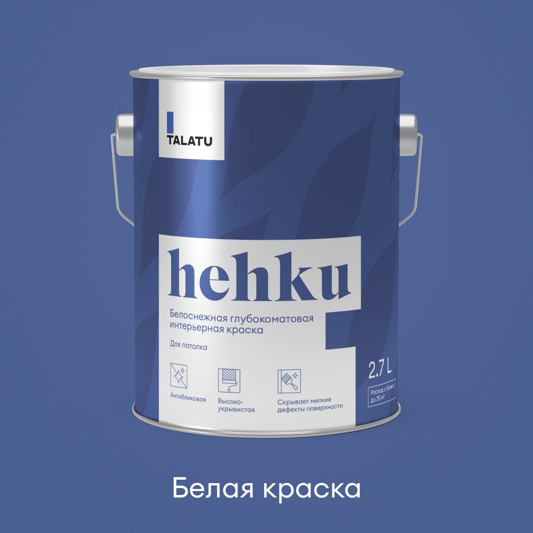 Краска для потолков Talatu Hehku, глубокоматовая, белоснежная, 0,9 л