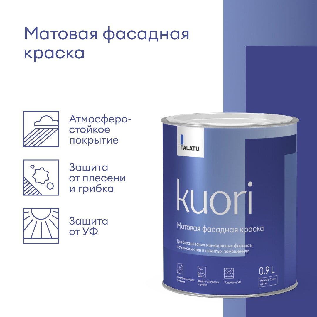 СохранитьКраска фасадная атмосферостойкая матовая TALATU KUORI база А 0,9 л интересное: