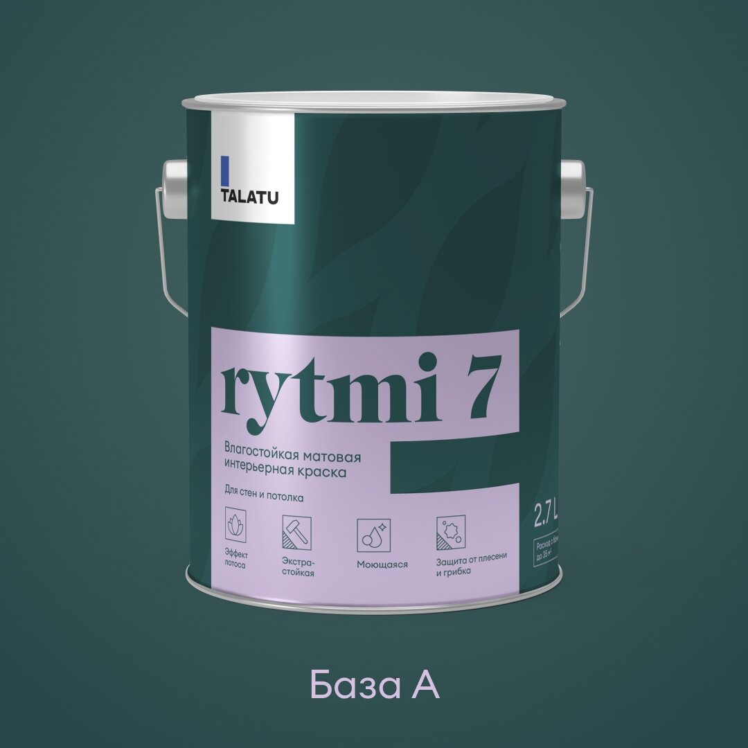 Купить Краска для стен и потолков влагостойкая матовая TALATU RYTMI 7 база A 2,7 л