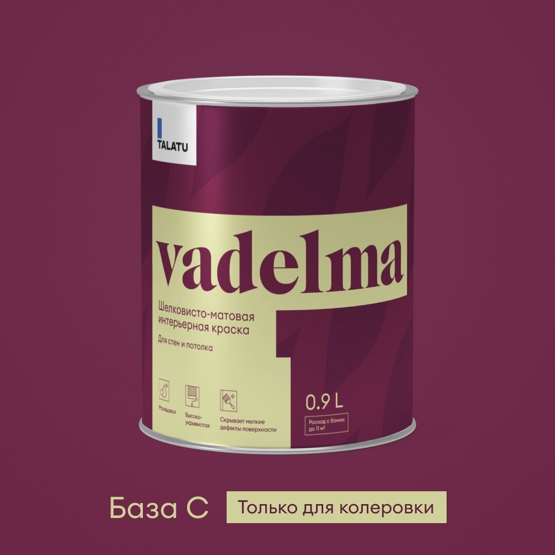 Купить Краска для стен и потолков шелковисто-матовая TALATU VADELMA база C 0,9 л