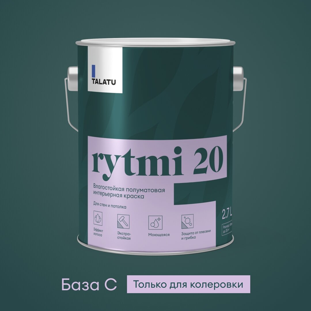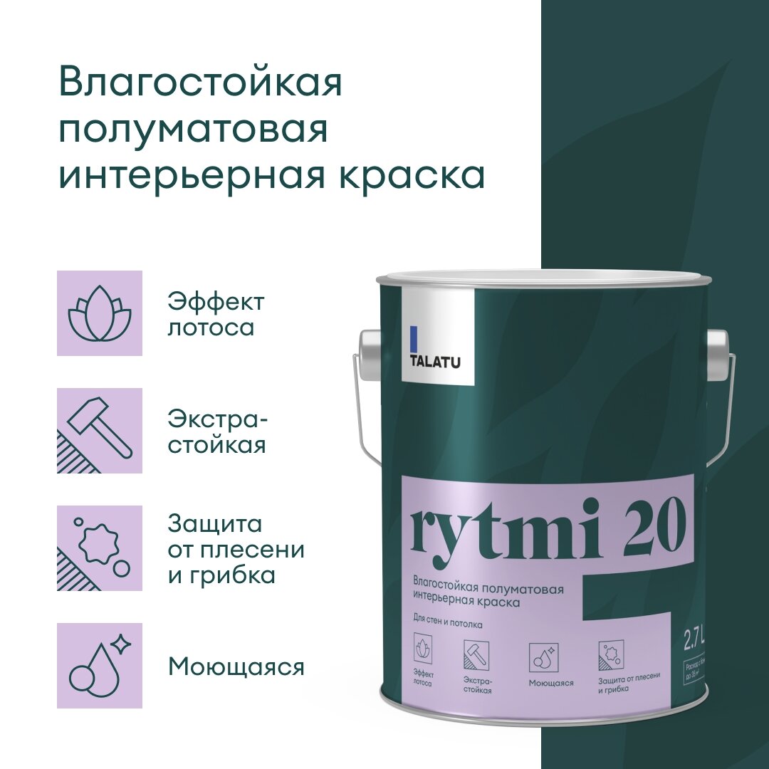 Купить Краска для стен и потолков влагостойкая полуматовая TALATU RYTMI 20 база C 2,7 л