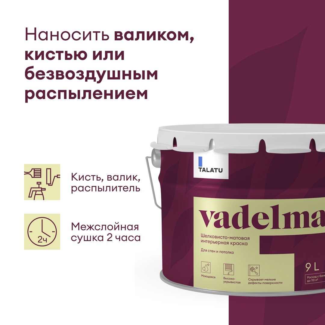 Краска для стен и потолков шелковисто-матовая TALATU VADELMA база C 9,0 л