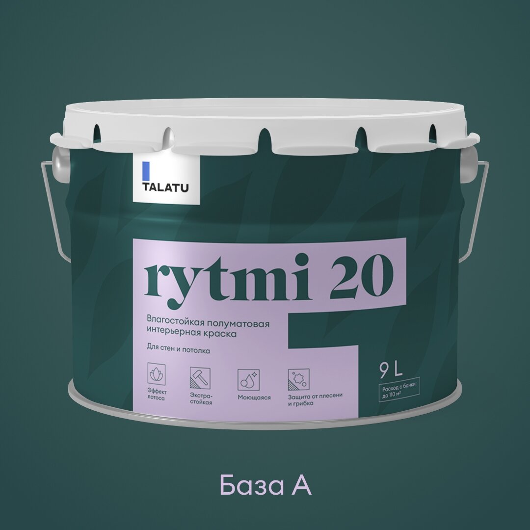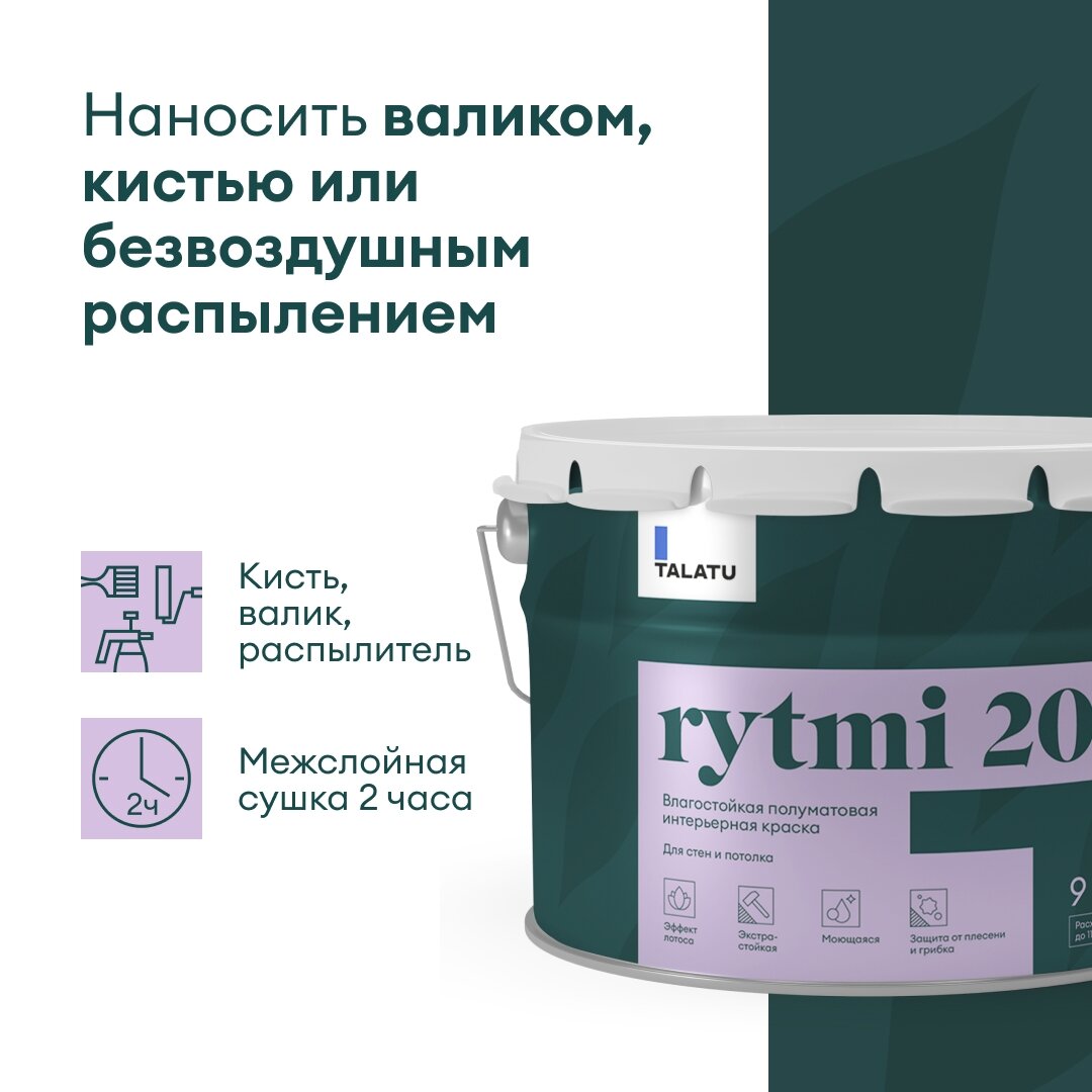 Купить Краска для стен и потолков влагостойкая полуматовая TALATU RYTMI 20 база A 9,0 л