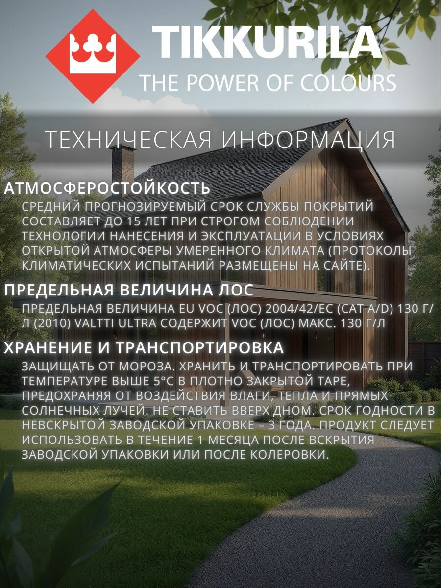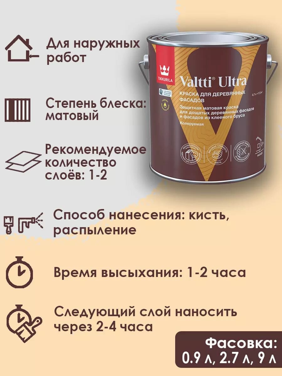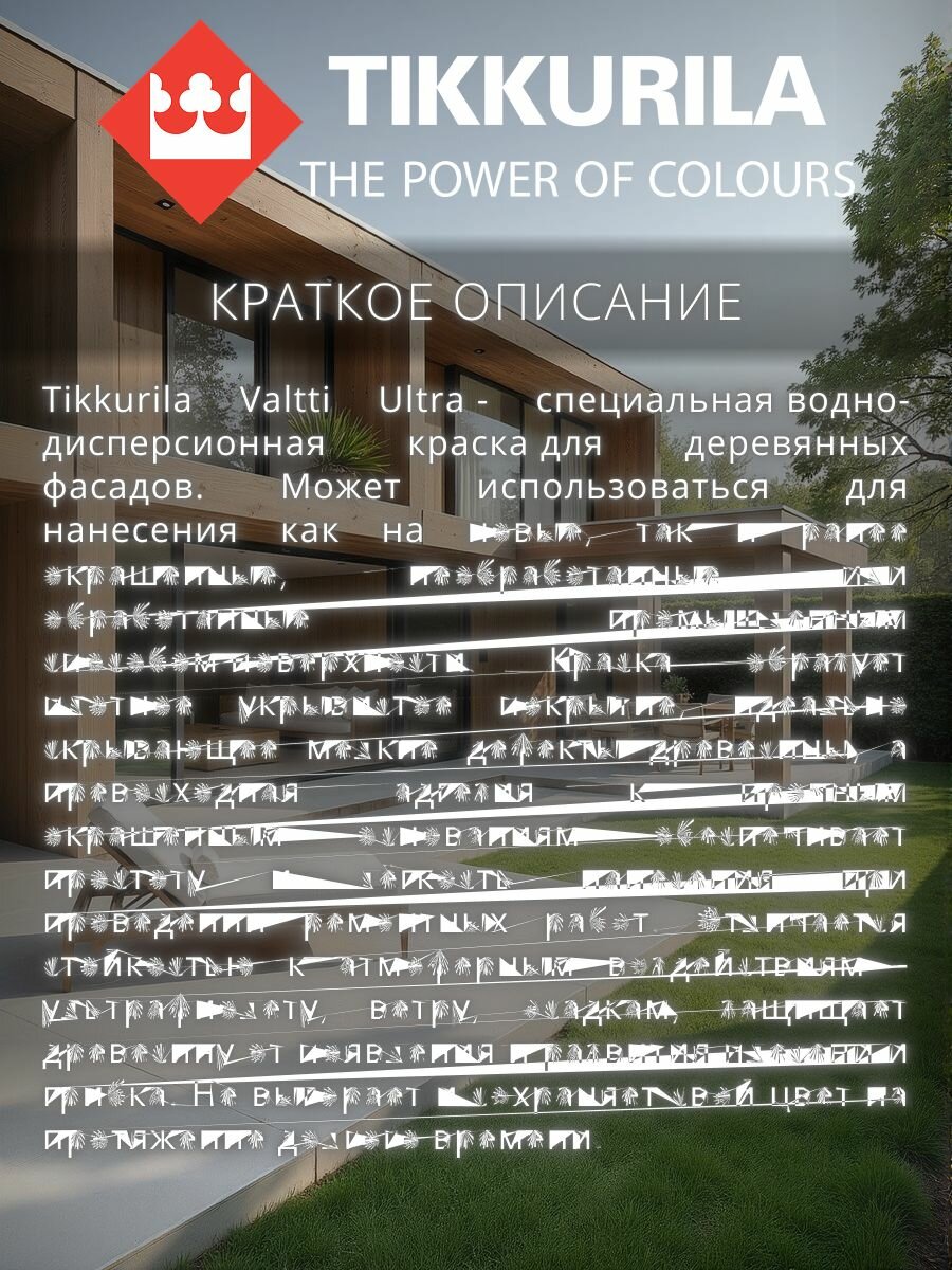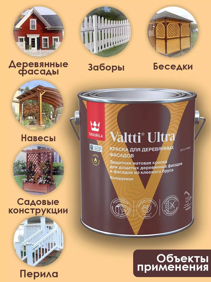 Краска для деревянных фасадов Tikkurila Valtti Ultra база А белая 2.7 л / Тиккурила Валти Ультра фасадная краска интересное: