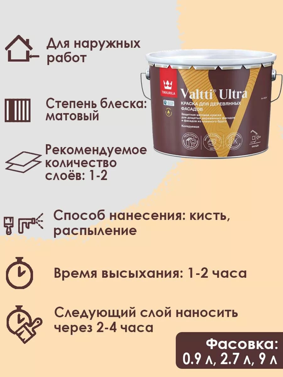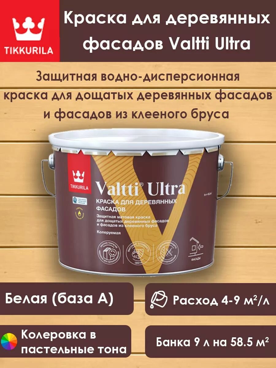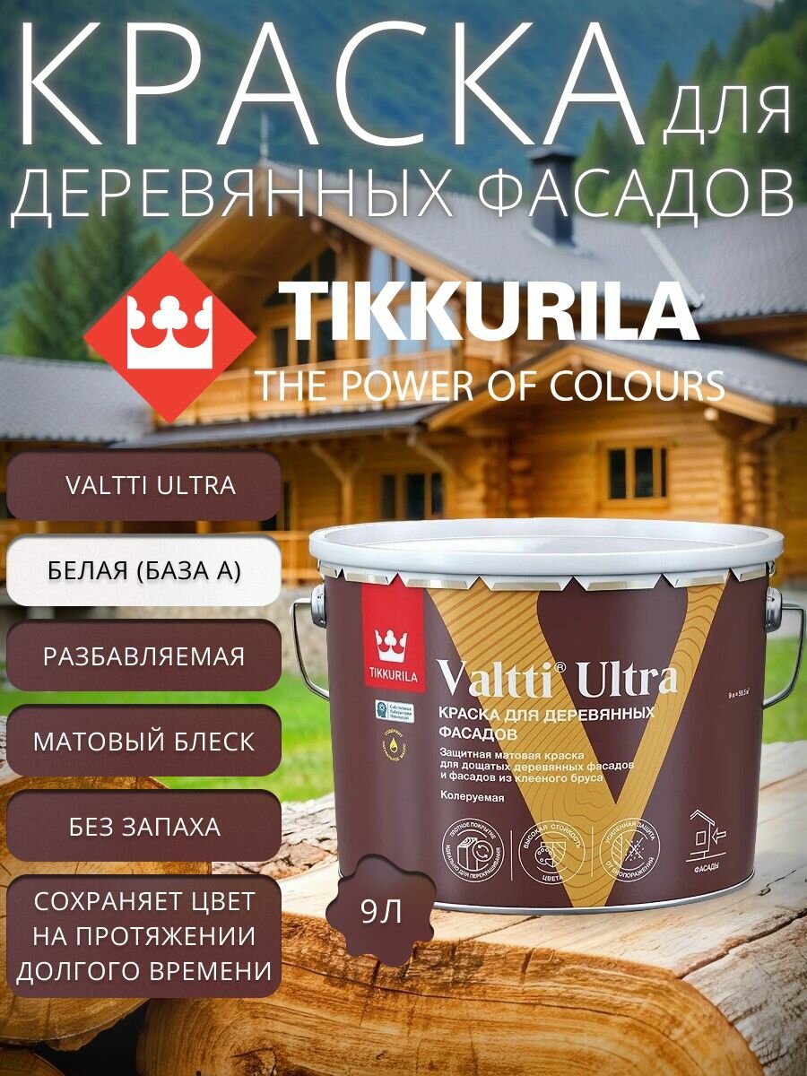 Краска для деревянных фасадов Tikkurila Valtti Ultra база А белая 9 л / Тиккурила Валти Ультра фасадная краска интересное: