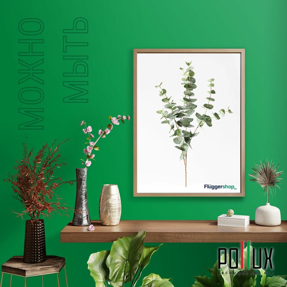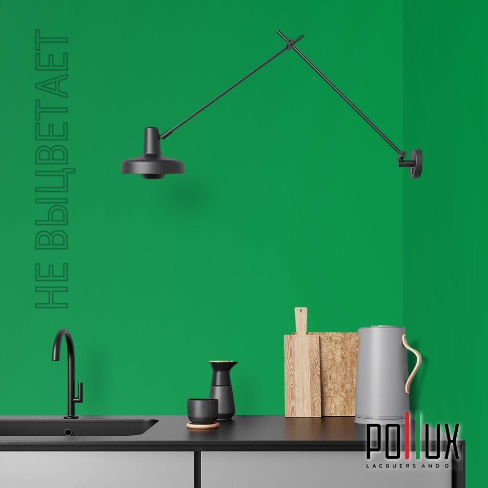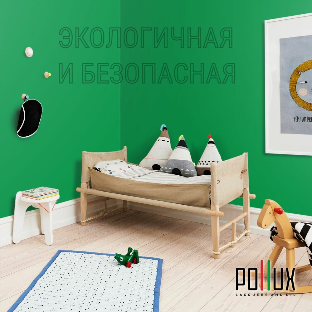 Краска моющаяся интерьерная для стен и потолков, Pollux INTERIOR без запаха, быстросохнущая, акриловая, матовое покрытие, цвет NCS S 6030-G10Y, 1л.