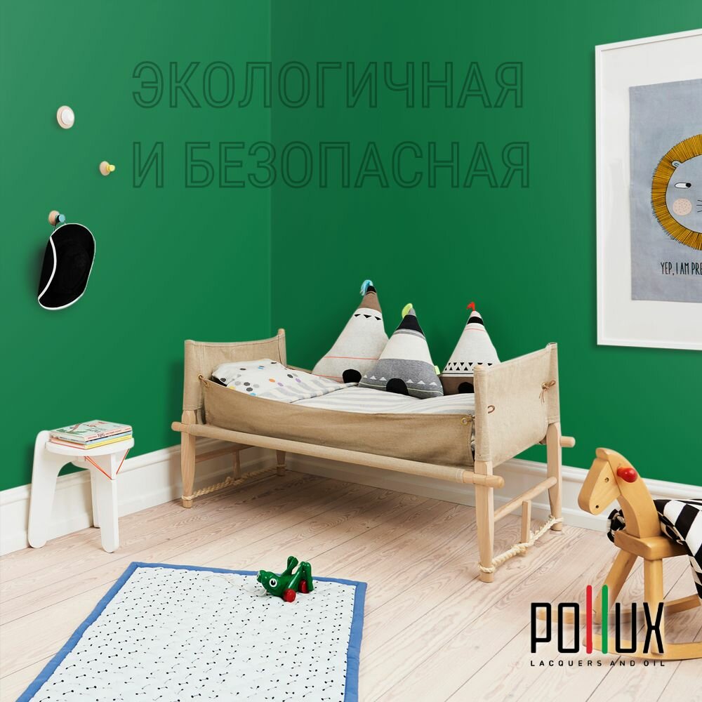 Краска моющаяся интерьерная для стен и потолков, Pollux INTERIOR без запаха, быстросохнущая, акриловая, матовое покрытие, цвет NCS S 5540-G10Y, 1л.