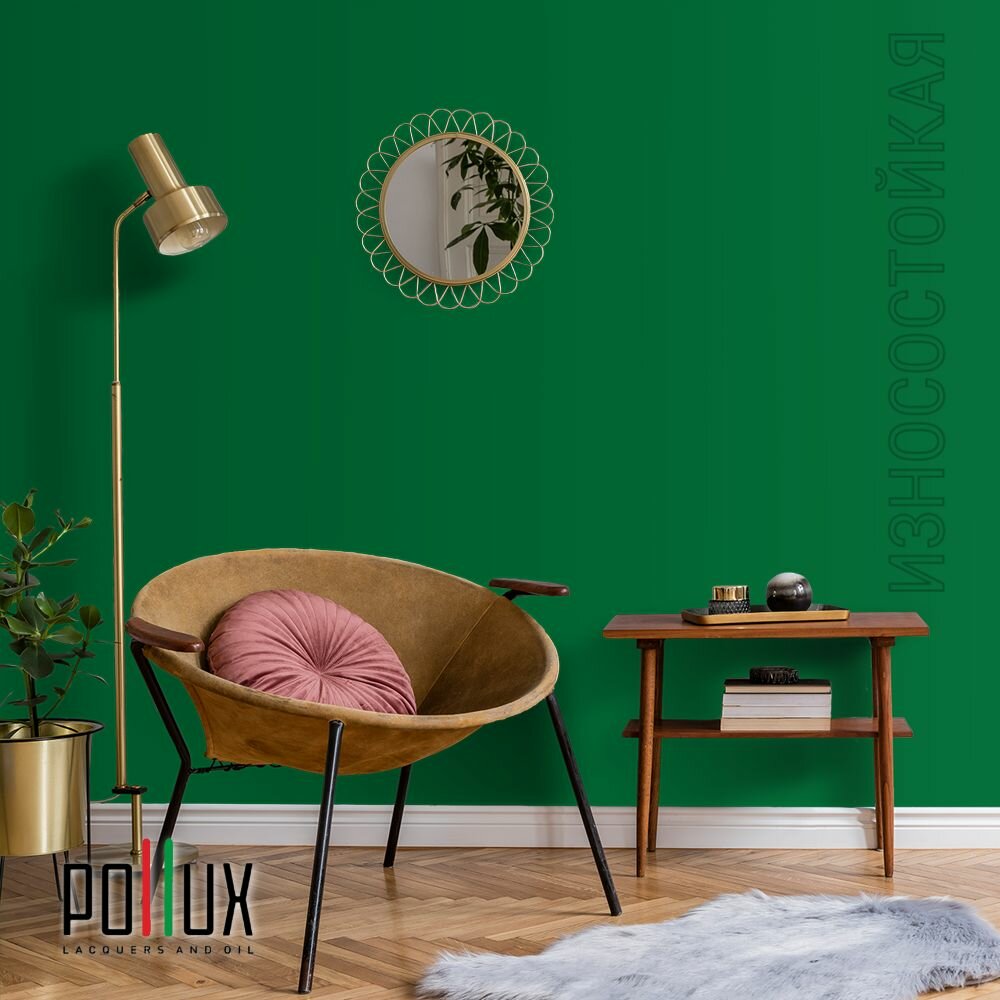 Краска моющаяся интерьерная для стен и потолков, Pollux INTERIOR без запаха, быстросохнущая, акриловая, матовое покрытие, цвет NCS S 3030-G10Y, 1л.