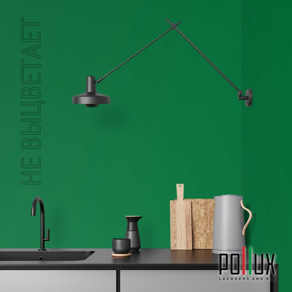 Краска моющаяся интерьерная для стен и потолков, Pollux INTERIOR без запаха, быстросохнущая, акриловая, матовое покрытие, цвет NCS S 6030-G10Y, 1л.