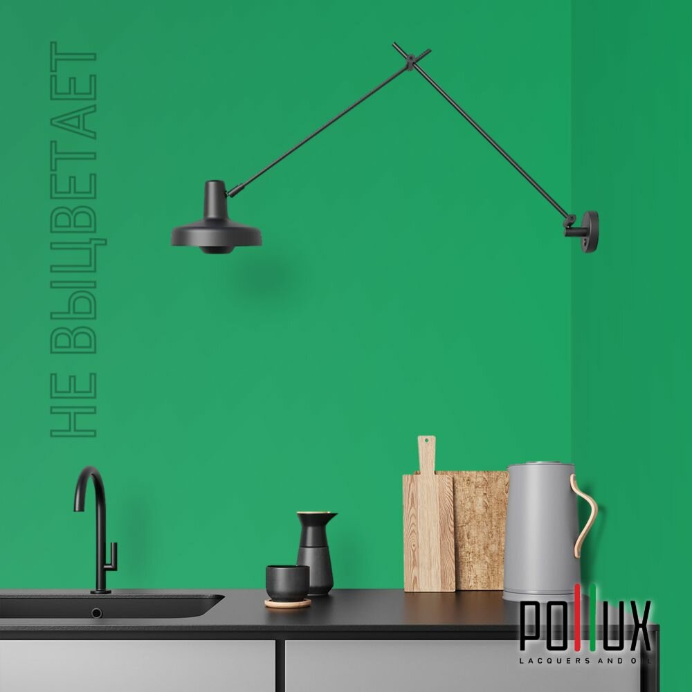 Краска моющаяся интерьерная для стен и потолков, Pollux INTERIOR без запаха, быстросохнущая, акриловая, матовое покрытие, цвет NCS S 6030-G10Y, 1л.