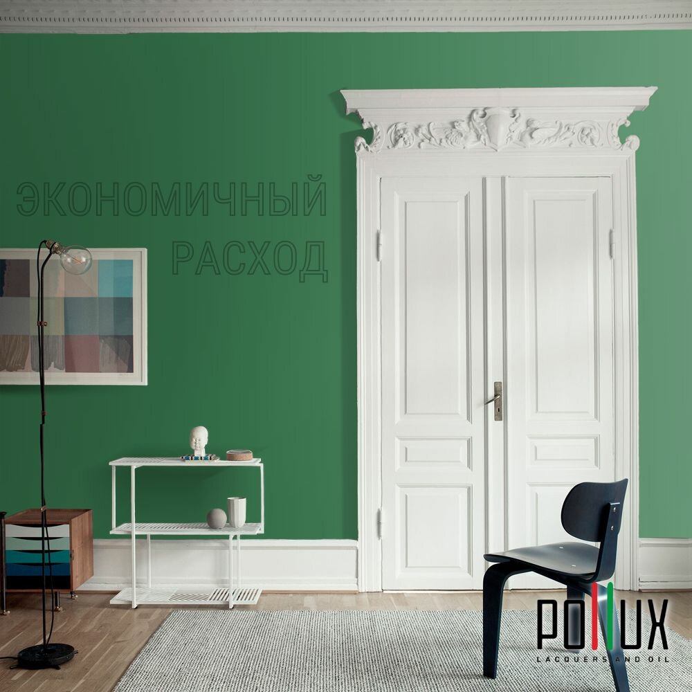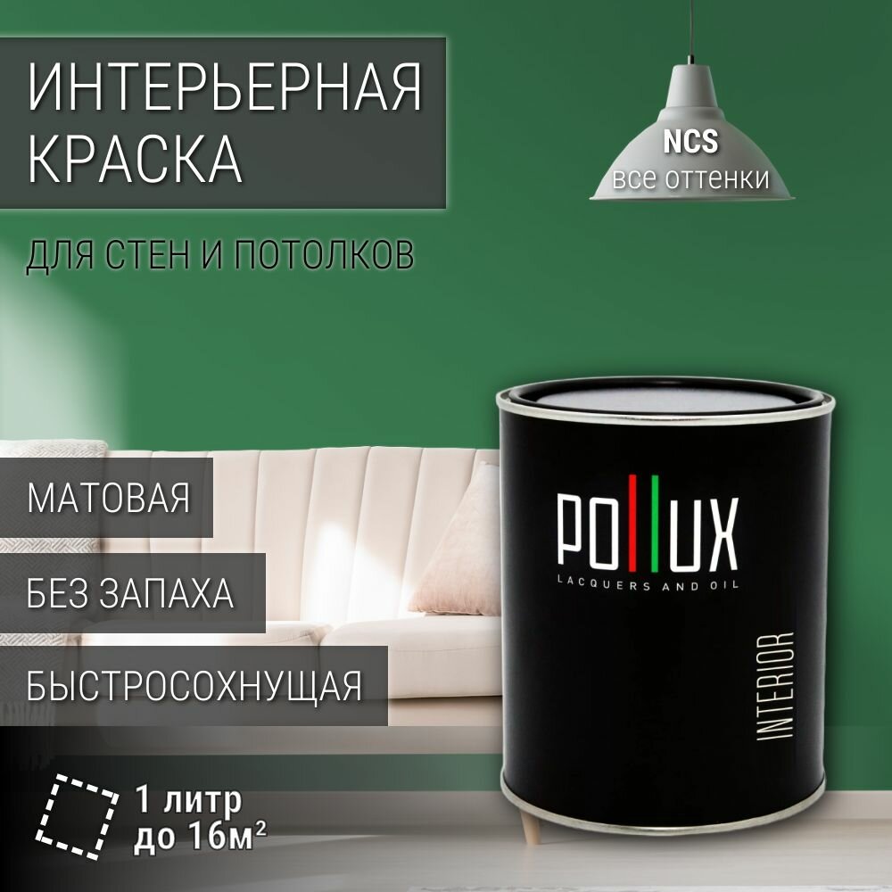 Краска моющаяся интерьерная для стен и потолков, Pollux INTERIOR без запаха, быстросохнущая, акриловая, матовое покрытие, цвет NCS S 6530-G10Y, 1л.