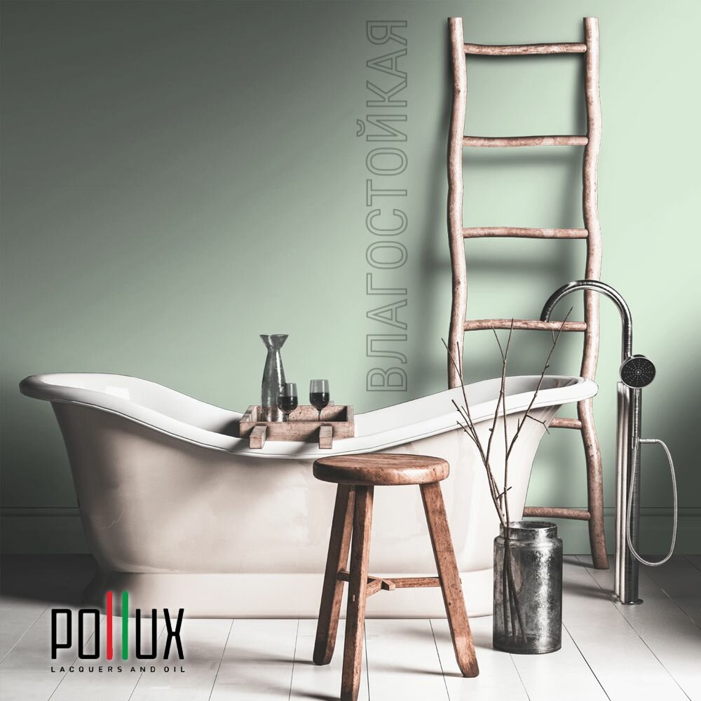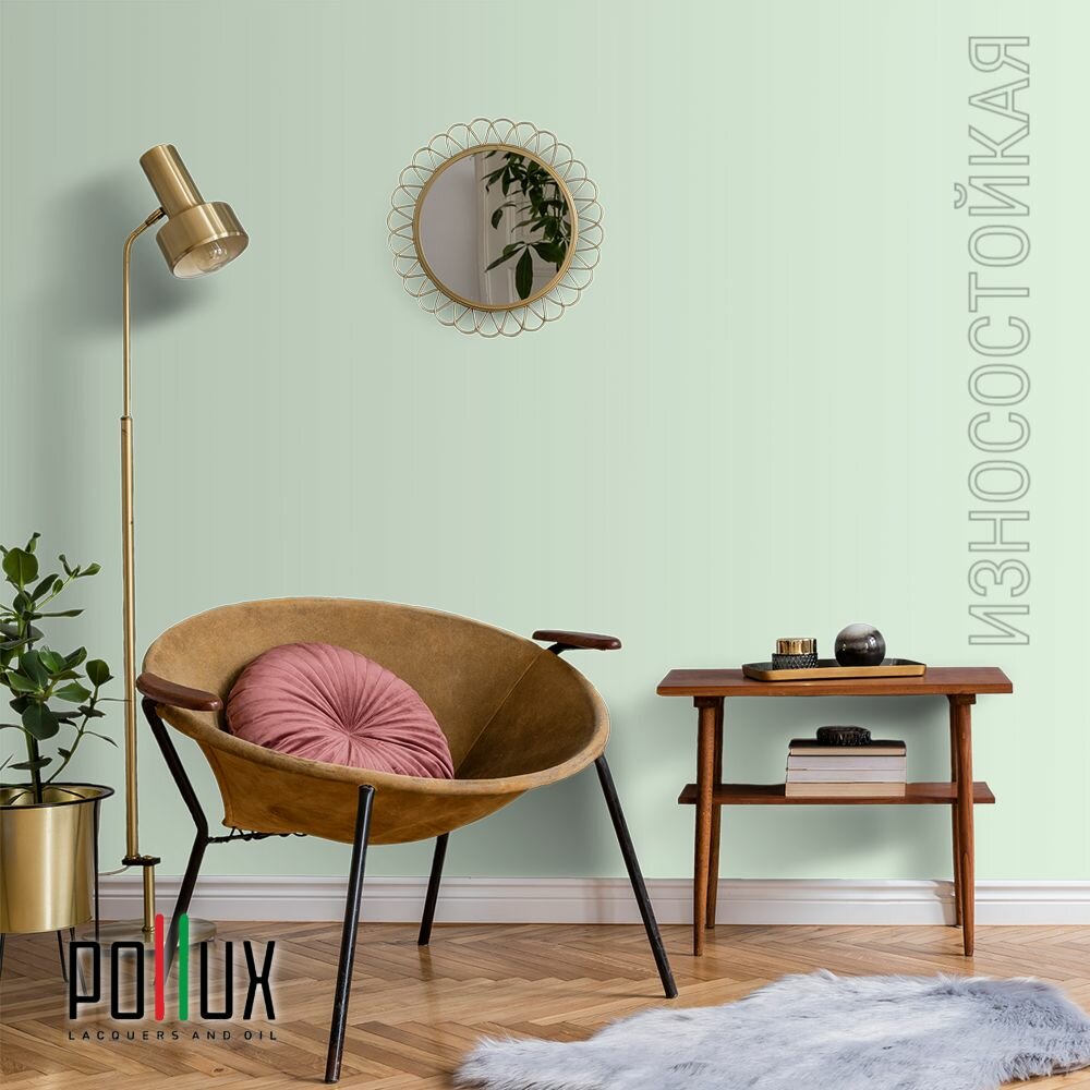 Краска моющаяся интерьерная для стен и потолков, Pollux INTERIOR без запаха, быстросохнущая, акриловая, матовое покрытие, цвет NCS S 6530-G10Y, 1л.