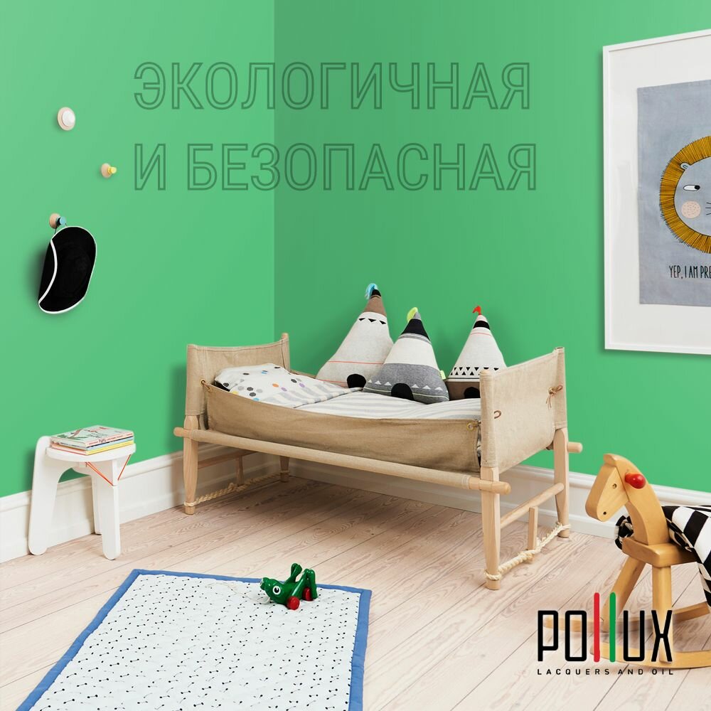Краска моющаяся интерьерная для стен и потолков, Pollux INTERIOR без запаха, быстросохнущая, акриловая, матовое покрытие, цвет NCS S 6020-G10Y, 1л.