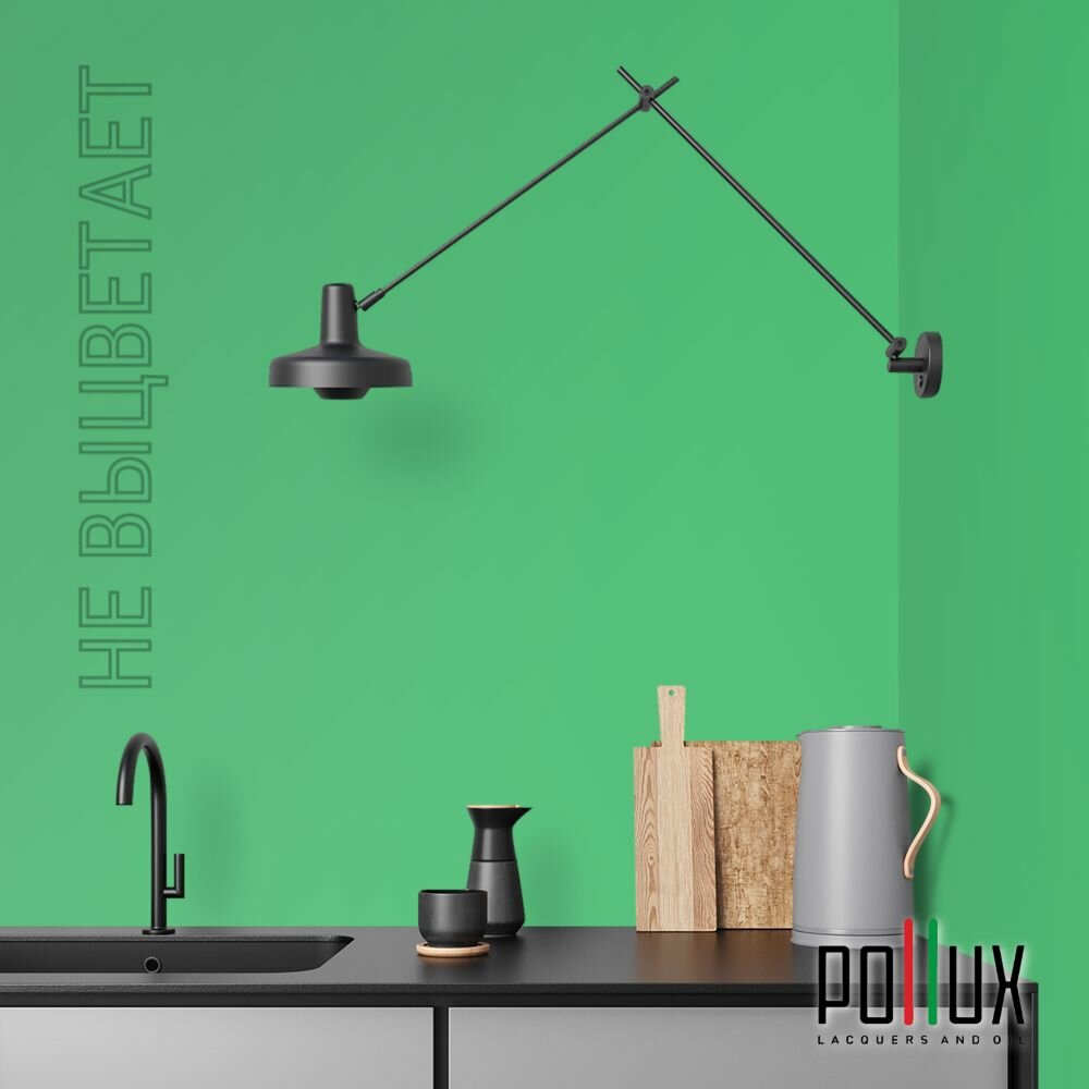 Краска моющаяся интерьерная для стен и потолков, Pollux INTERIOR без запаха, быстросохнущая, акриловая, матовое покрытие, цвет NCS S 3560-G10Y, 1л.