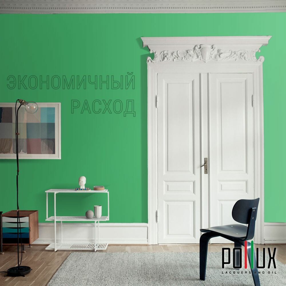 Краска моющаяся интерьерная для стен и потолков, Pollux INTERIOR без запаха, быстросохнущая, акриловая, матовое покрытие, цвет NCS S 6530-G10Y, 1л.
