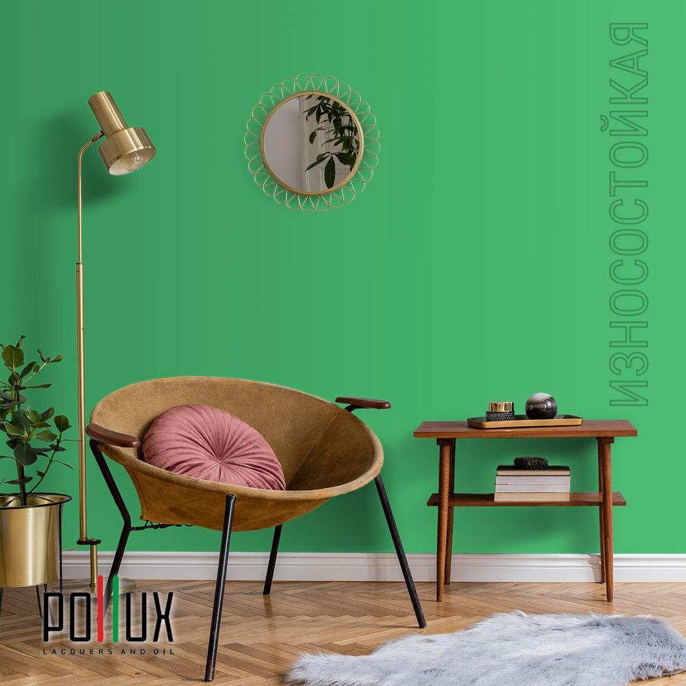 Краска моющаяся интерьерная для стен и потолков, Pollux INTERIOR без запаха, быстросохнущая, акриловая, матовое покрытие, цвет NCS S 6030-G10Y, 1л.