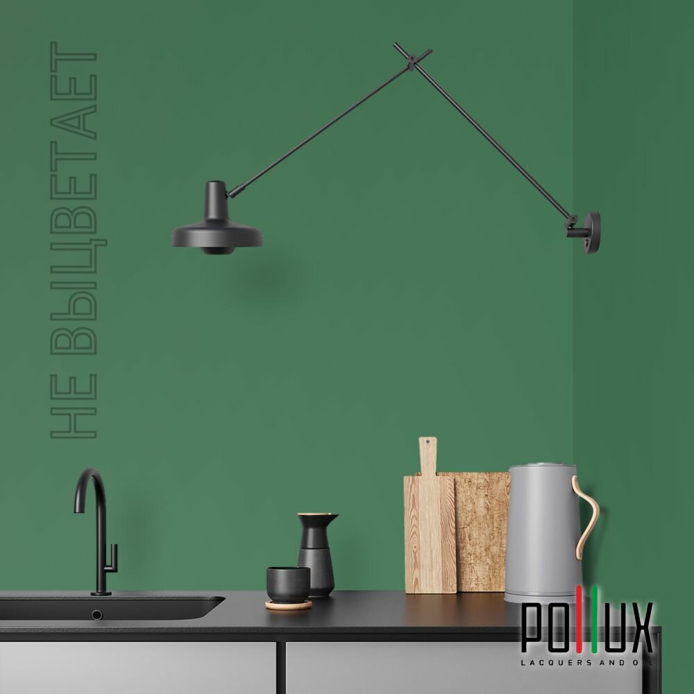 Краска моющаяся интерьерная для стен и потолков, Pollux INTERIOR без запаха, быстросохнущая, акриловая, матовое покрытие, цвет NCS S 3560-G10Y, 1л.