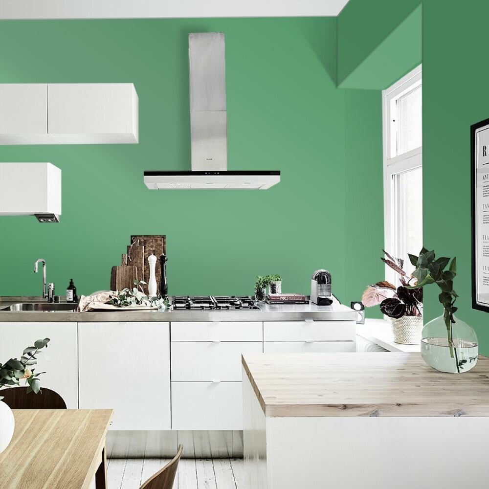 Краска моющаяся интерьерная для стен и потолков, Pollux INTERIOR без запаха, быстросохнущая, акриловая, матовое покрытие, цвет NCS S 6030-G10Y, 1л.