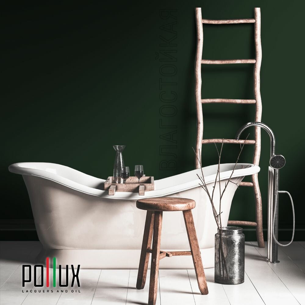 Краска моющаяся интерьерная для стен и потолков, Pollux INTERIOR без запаха, быстросохнущая, акриловая, матовое покрытие, цвет NCS S 6530-G10Y, 1л.