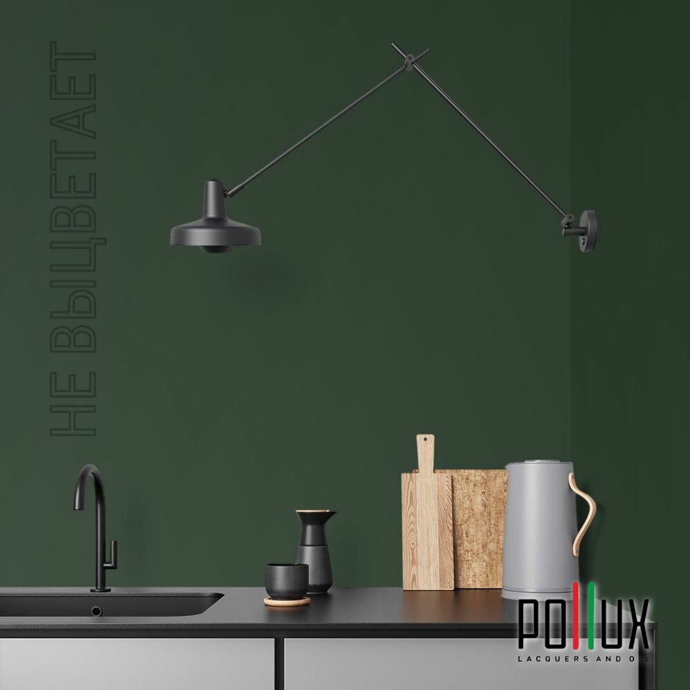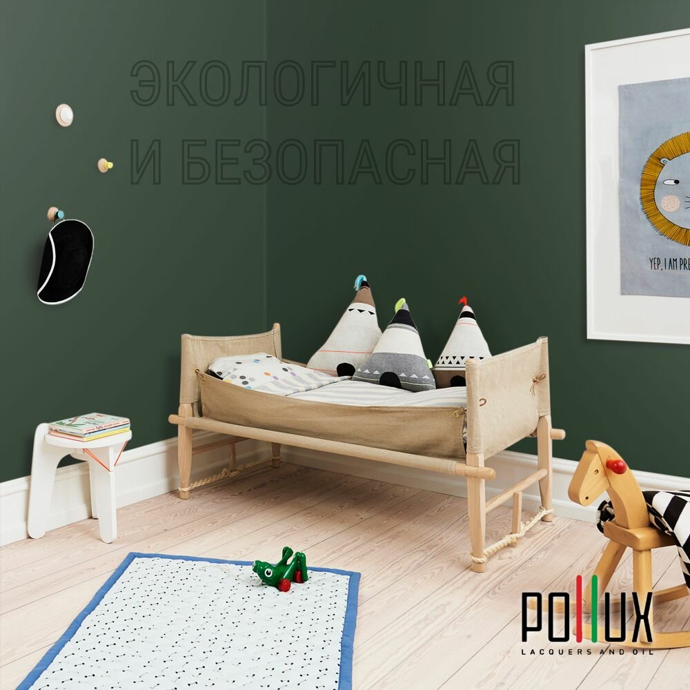 Краска моющаяся интерьерная для стен и потолков, Pollux INTERIOR без запаха, быстросохнущая, акриловая, матовое покрытие, цвет NCS S 4050-G10Y, 1л.