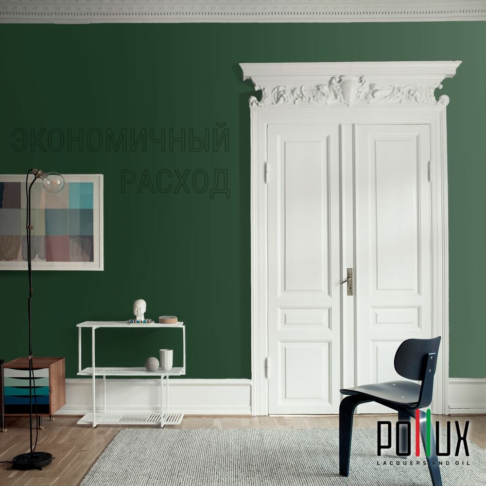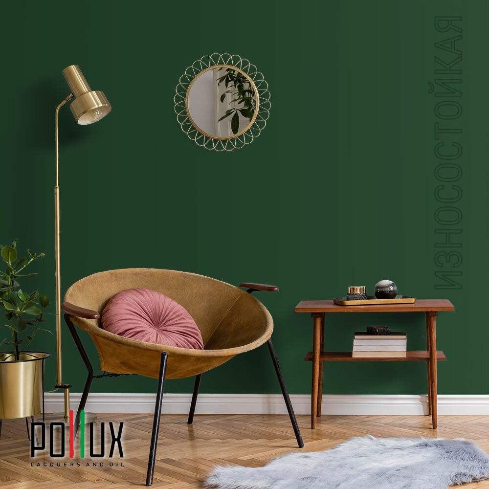 Краска моющаяся интерьерная для стен и потолков, Pollux INTERIOR без запаха, быстросохнущая, акриловая, матовое покрытие, цвет NCS S 6530-G10Y, 1л.