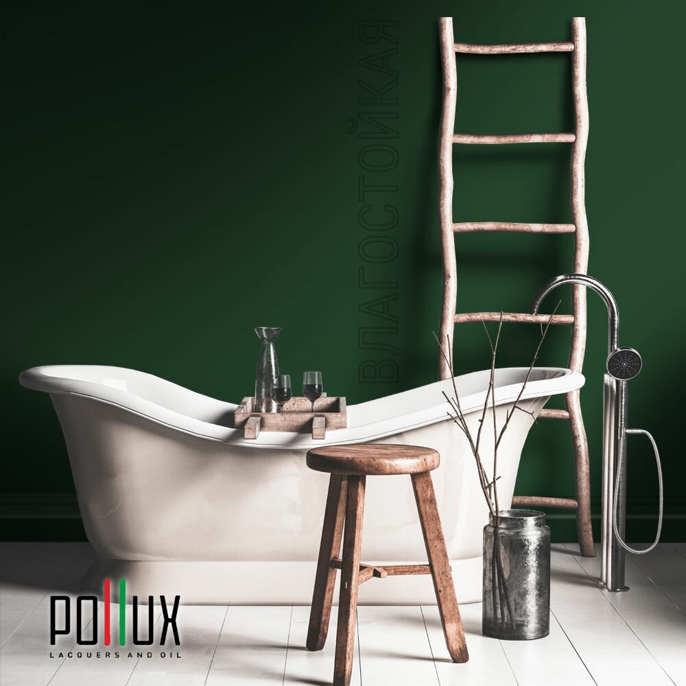 Краска моющаяся интерьерная для стен и потолков, Pollux INTERIOR без запаха, быстросохнущая, акриловая, матовое покрытие, цвет NCS S 8010-G10Y, 1л.
