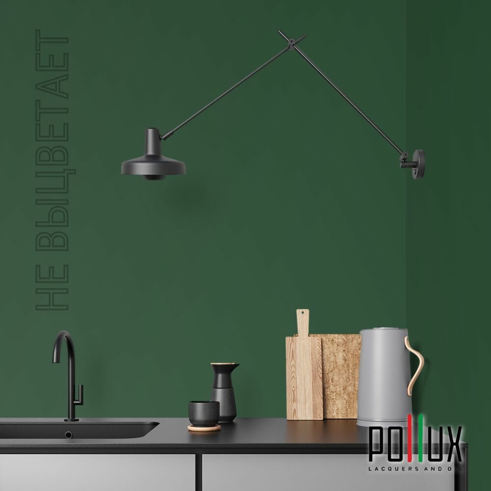 Краска моющаяся интерьерная для стен и потолков, Pollux INTERIOR без запаха, быстросохнущая, акриловая, матовое покрытие, цвет NCS S 3560-G10Y, 1л.