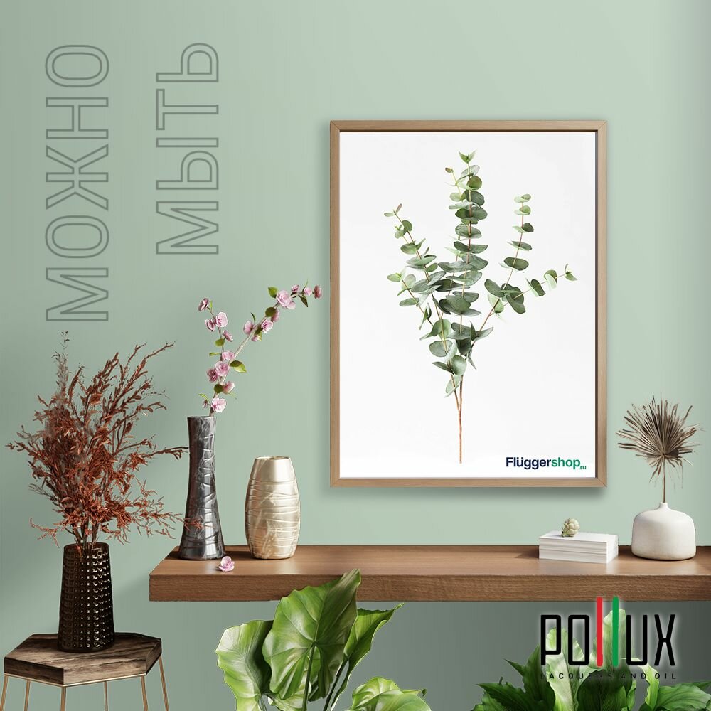 Краска моющаяся интерьерная для стен и потолков, Pollux INTERIOR без запаха, быстросохнущая, акриловая, матовое покрытие, цвет NCS S 5540-G10Y, 1л.