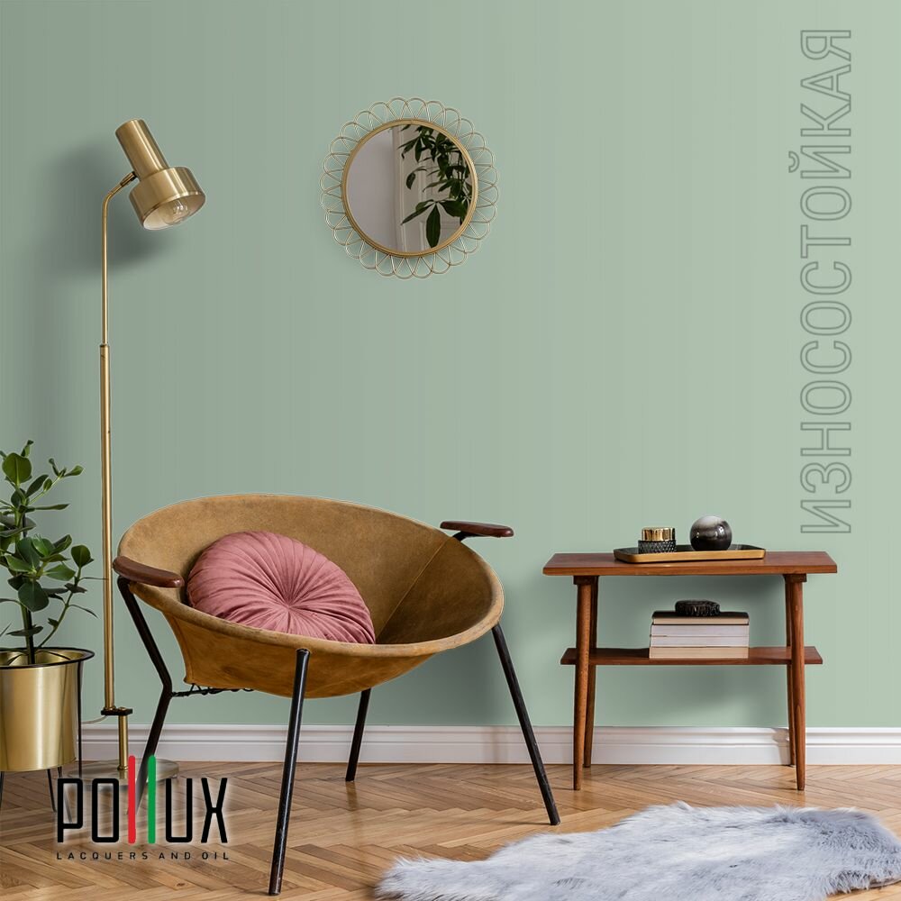 Краска моющаяся интерьерная для стен и потолков, Pollux INTERIOR без запаха, быстросохнущая, акриловая, матовое покрытие, цвет NCS S 6530-G10Y, 1л.