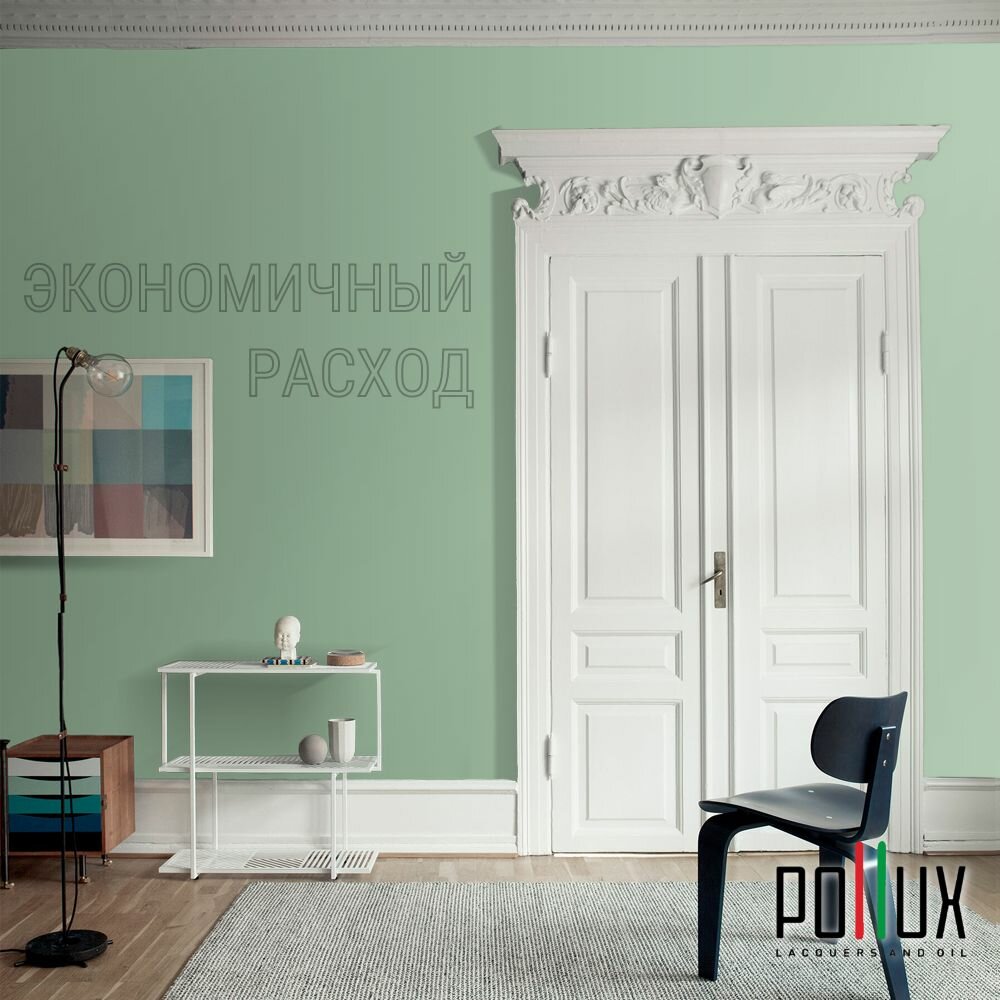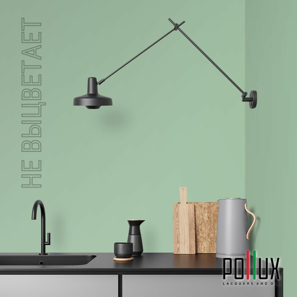 Краска моющаяся интерьерная для стен и потолков, Pollux INTERIOR без запаха, быстросохнущая, акриловая, матовое покрытие, цвет NCS S 6530-G10Y, 1л.