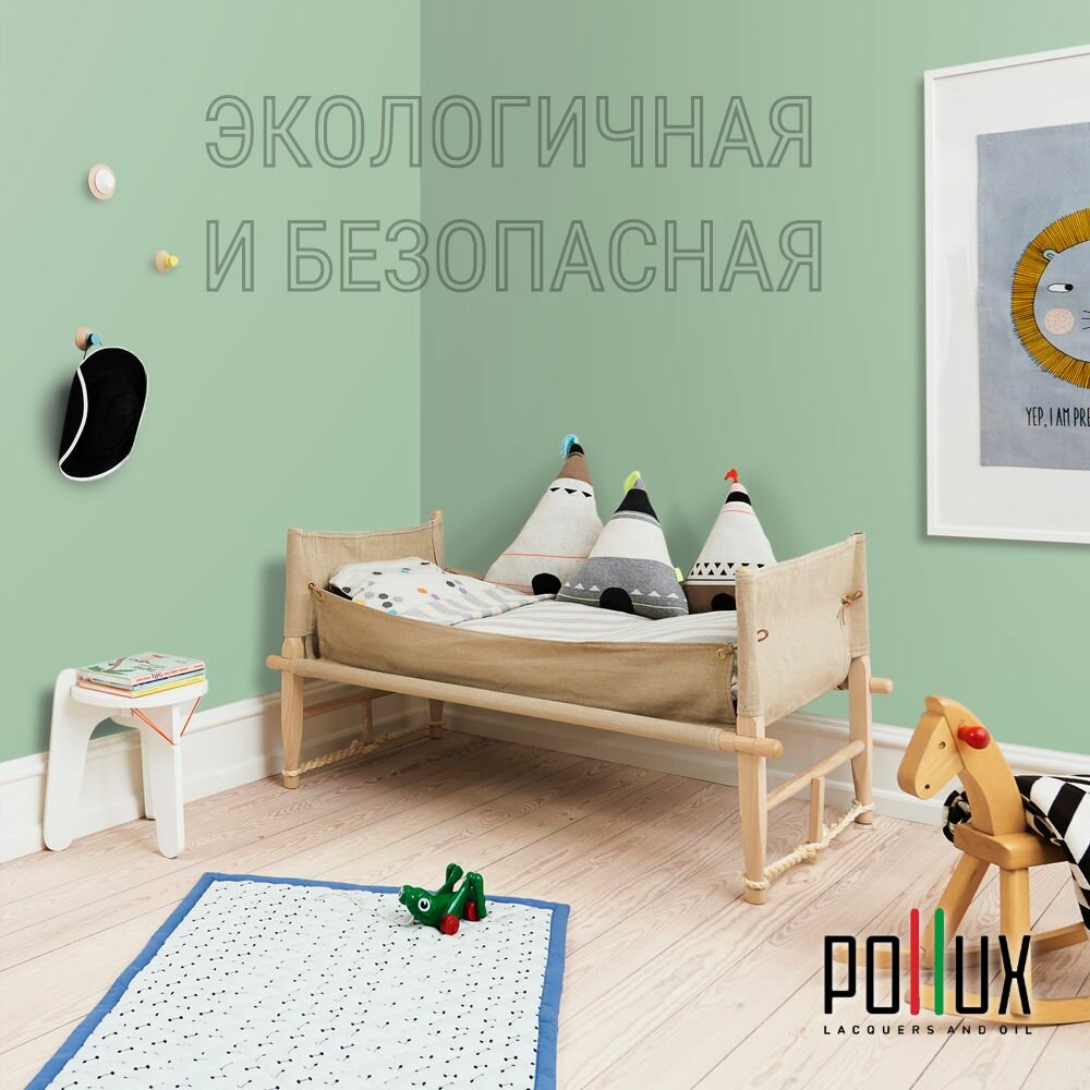 Краска моющаяся интерьерная для стен и потолков, Pollux INTERIOR без запаха, быстросохнущая, акриловая, матовое покрытие, цвет NCS S 5540-G10Y, 1л.