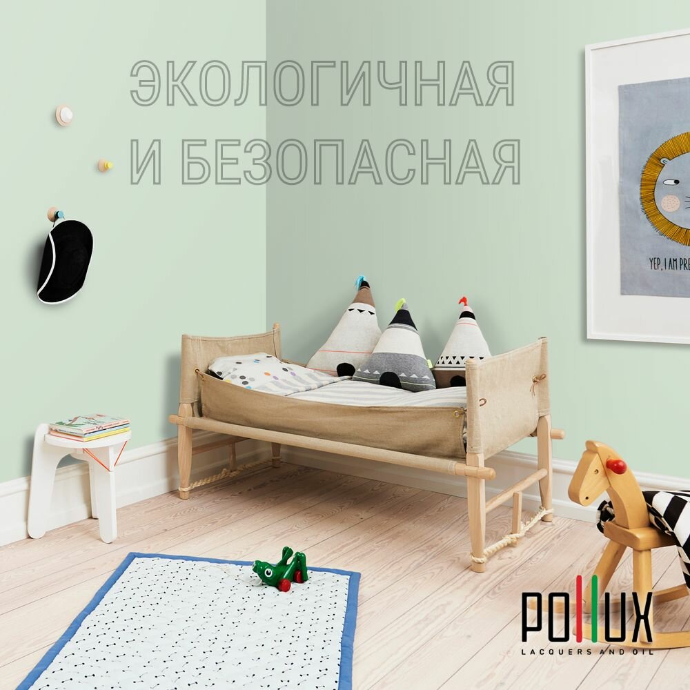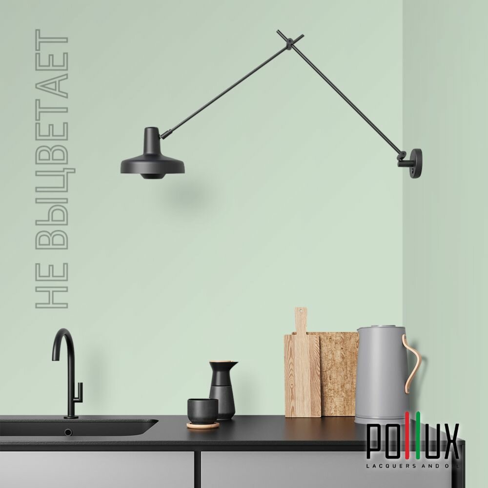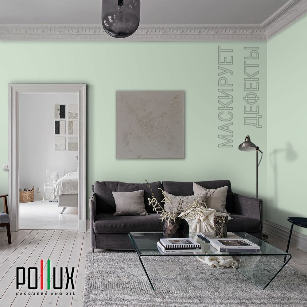 Краска моющаяся интерьерная для стен и потолков, Pollux INTERIOR без запаха, быстросохнущая, акриловая, матовое покрытие, цвет NCS S 6530-G10Y, 1л.