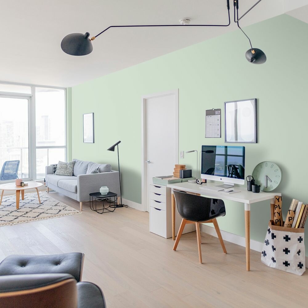 Краска моющаяся интерьерная для стен и потолков, Pollux INTERIOR без запаха, быстросохнущая, акриловая, матовое покрытие, цвет NCS S 6030-G10Y, 1л.