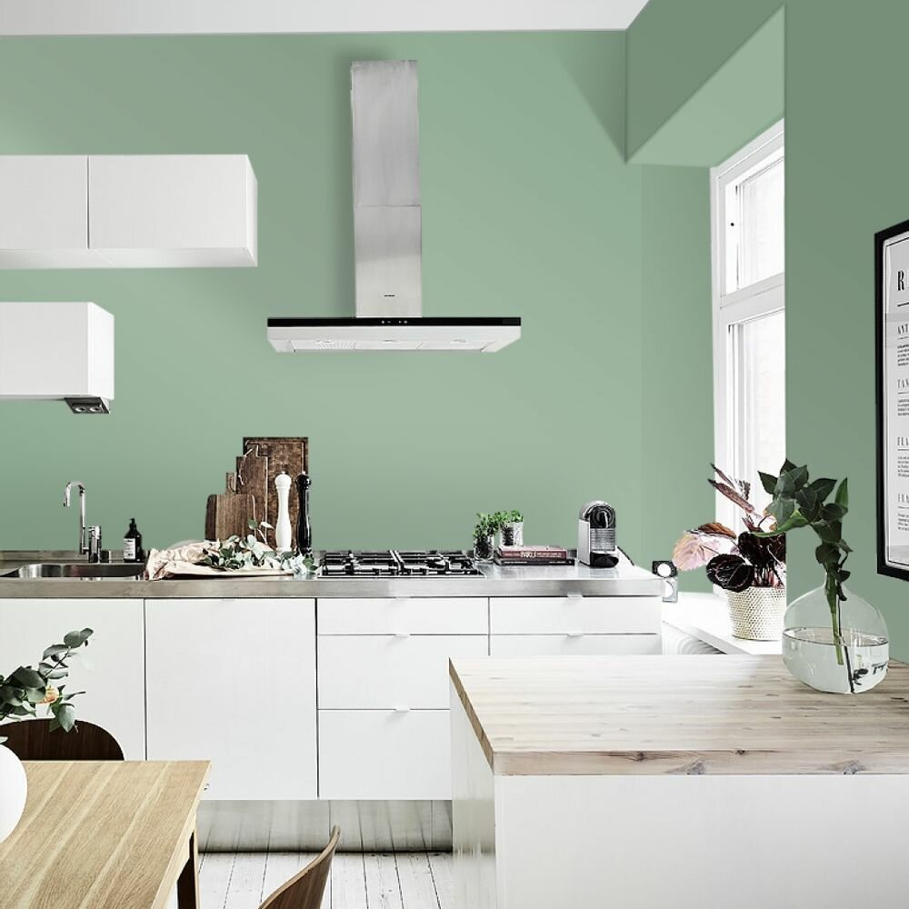 Краска моющаяся интерьерная для стен и потолков, Pollux INTERIOR без запаха, быстросохнущая, акриловая, матовое покрытие, цвет NCS S 6030-G10Y, 1л.