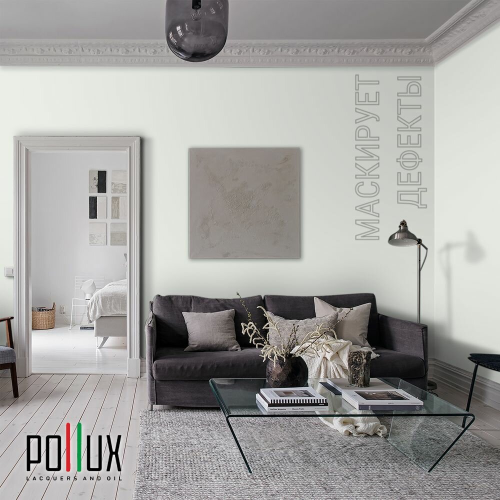 Краска моющаяся интерьерная для стен и потолков, Pollux INTERIOR без запаха, быстросохнущая, акриловая, матовое покрытие, цвет NCS S 4010-G10Y, 1л.