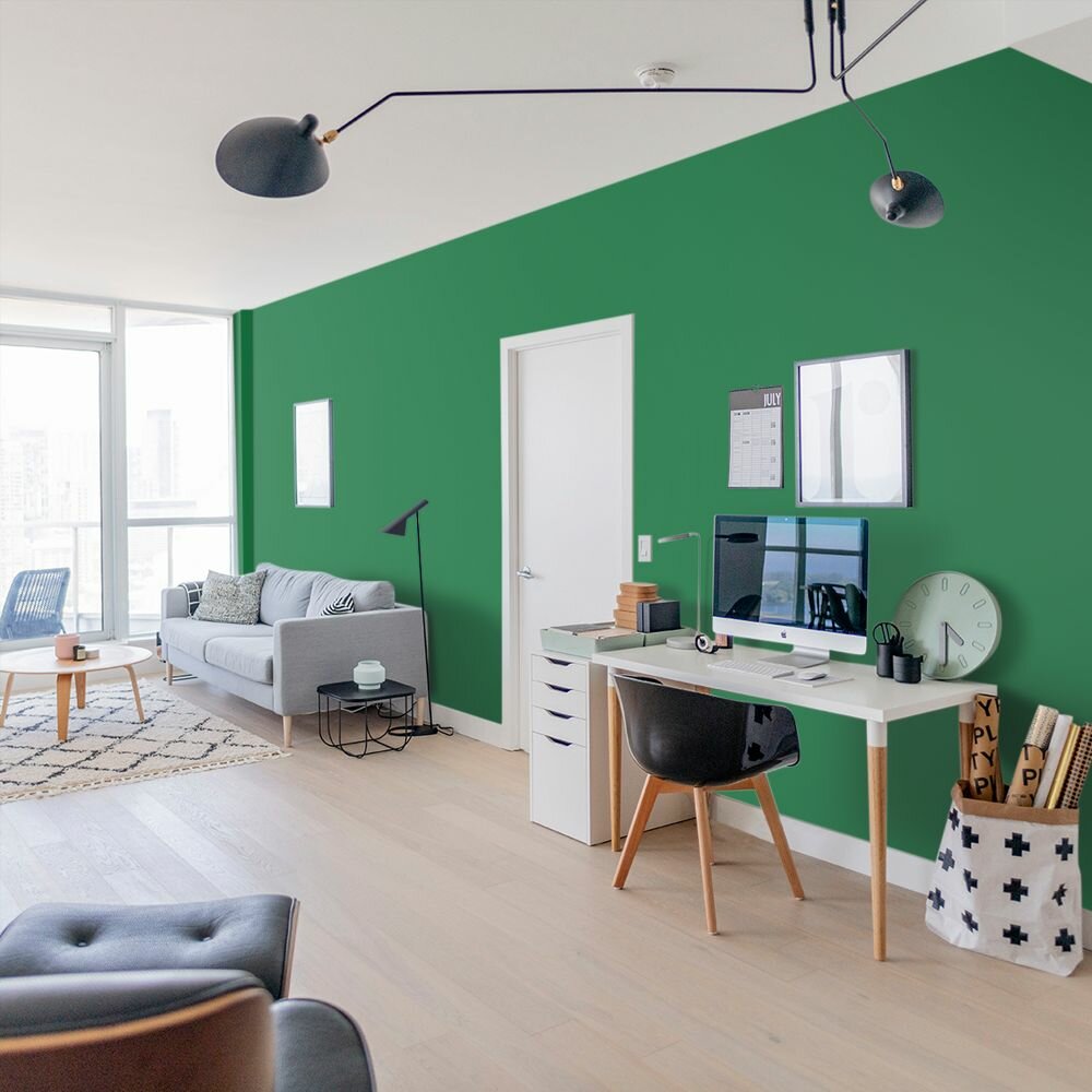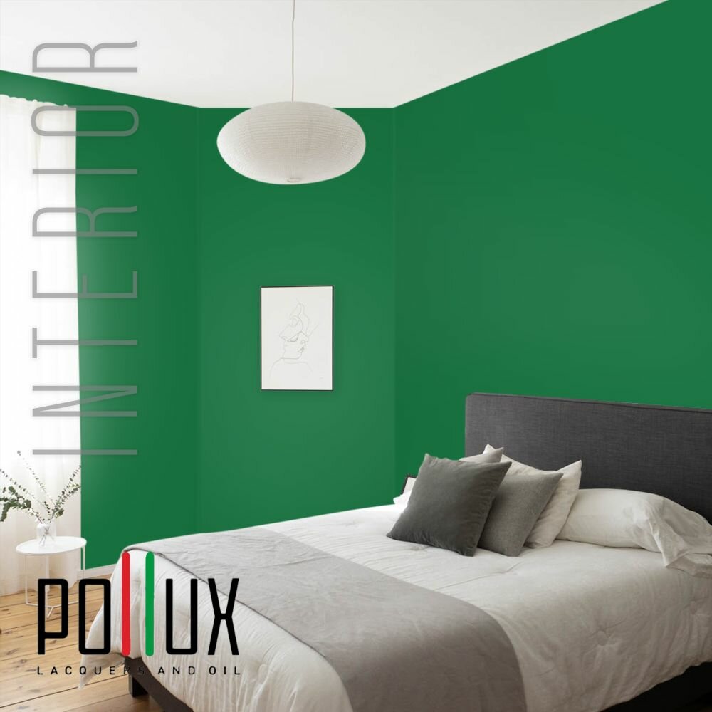 Краска моющаяся интерьерная для стен и потолков, Pollux INTERIOR без запаха, быстросохнущая, акриловая, матовое покрытие, цвет NCS S 4050-G10Y, 1л.