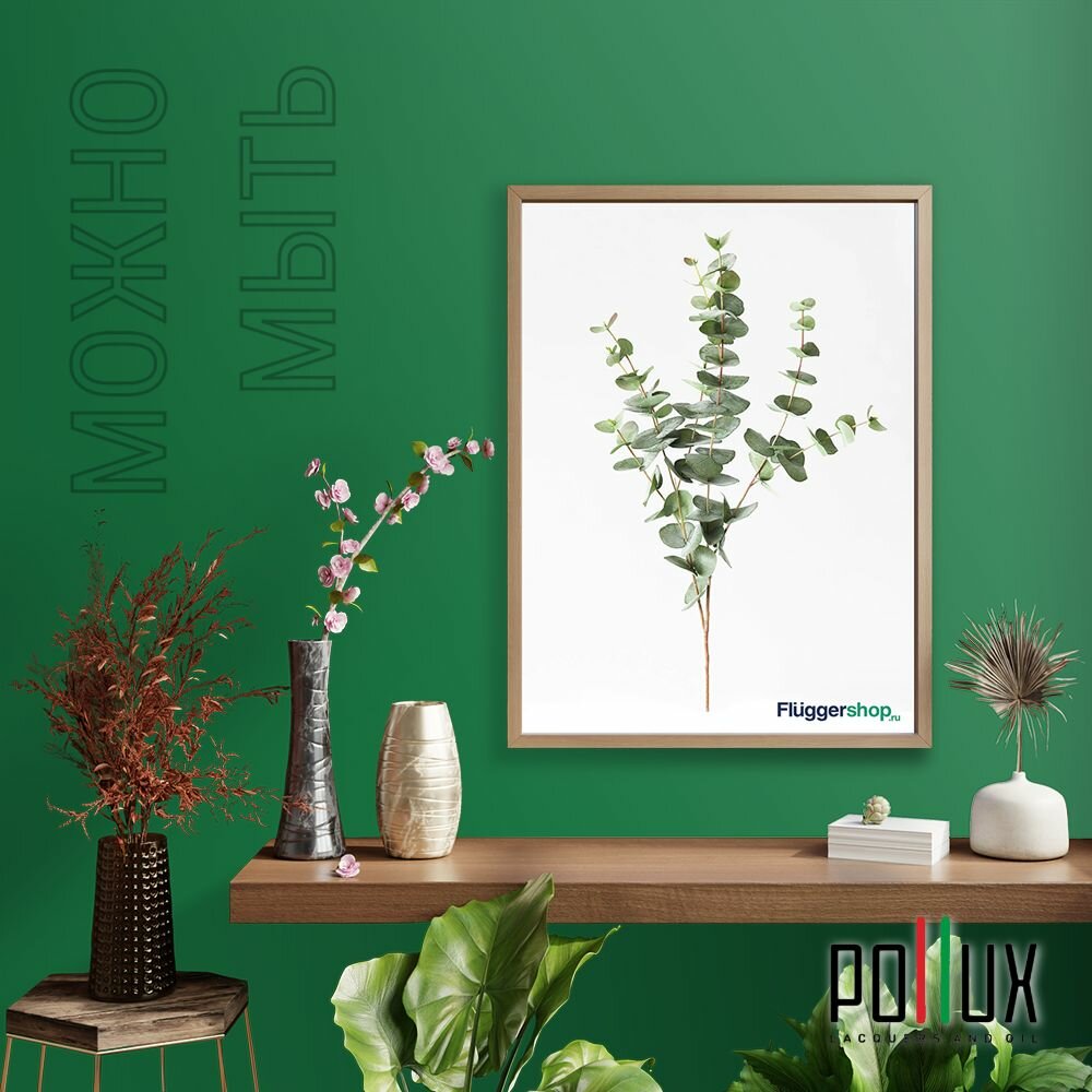 Краска моющаяся интерьерная для стен и потолков, Pollux INTERIOR без запаха, быстросохнущая, акриловая, матовое покрытие, цвет NCS S 8010-G10Y, 1л.