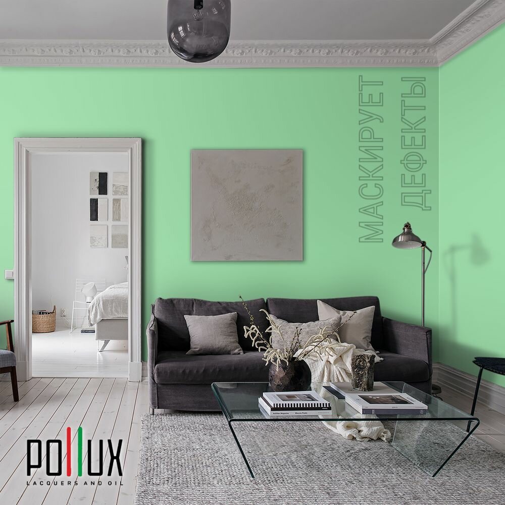 Краска моющаяся интерьерная для стен и потолков, Pollux INTERIOR без запаха, быстросохнущая, акриловая, матовое покрытие, цвет NCS S 6530-G10Y, 1л.