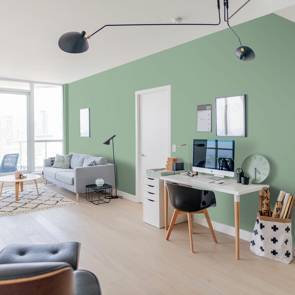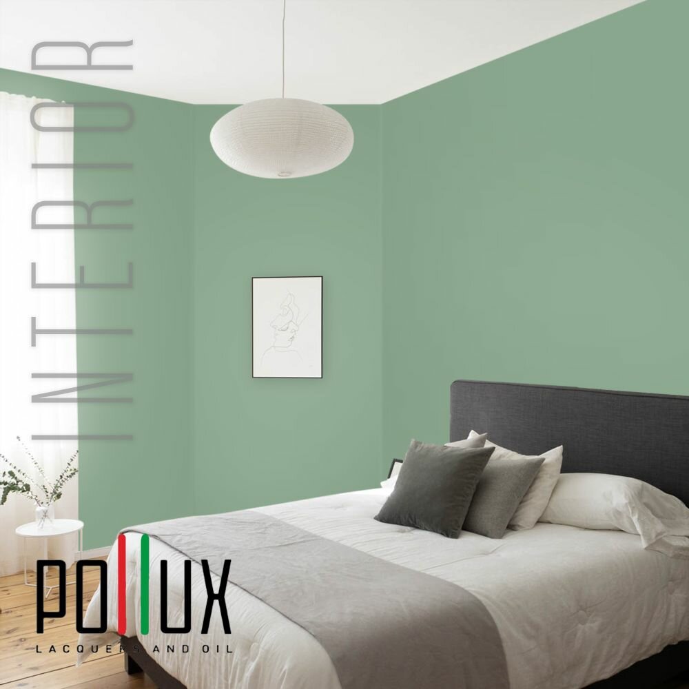 Краска моющаяся интерьерная для стен и потолков, Pollux INTERIOR без запаха, быстросохнущая, акриловая, матовое покрытие, цвет NCS S 4050-G10Y, 1л.