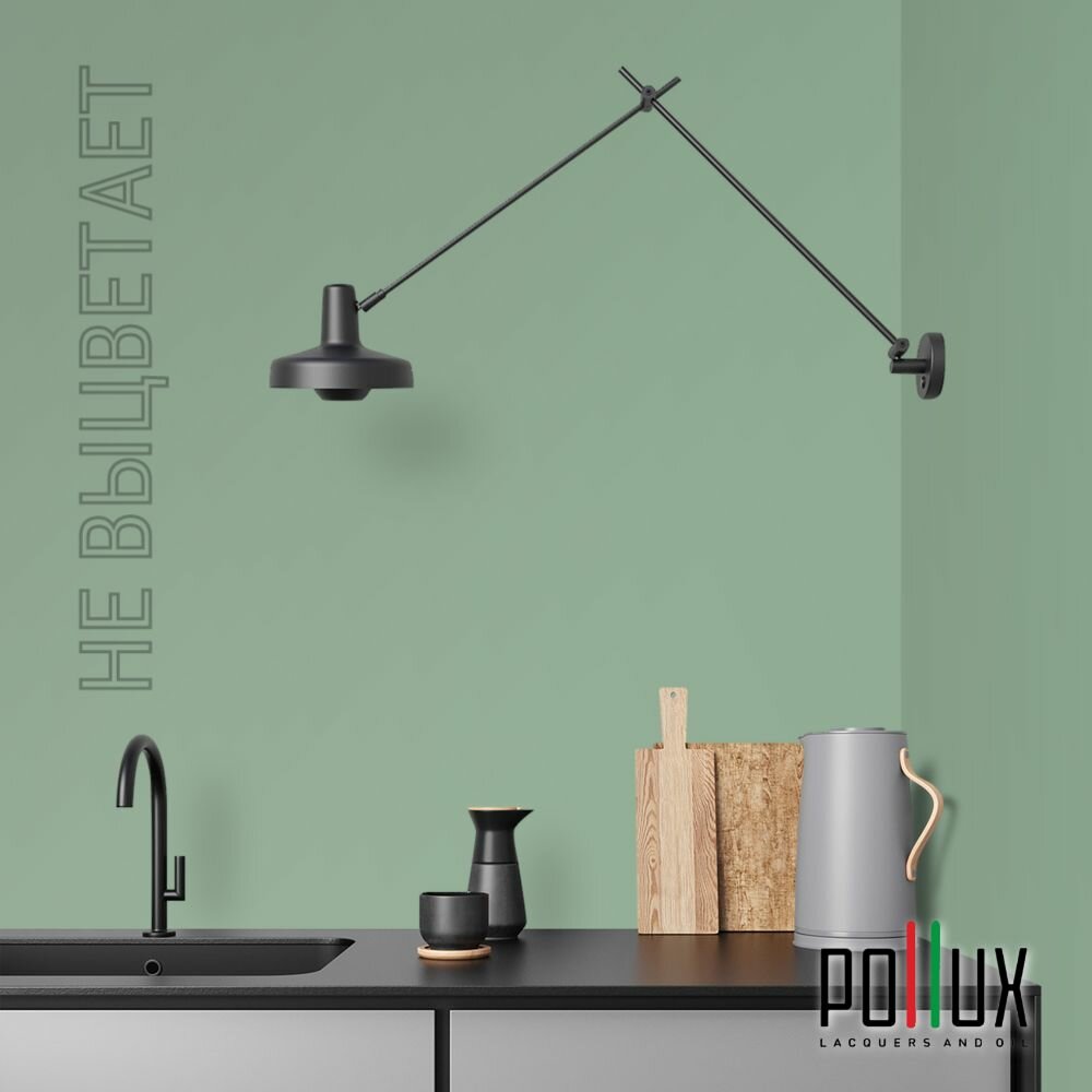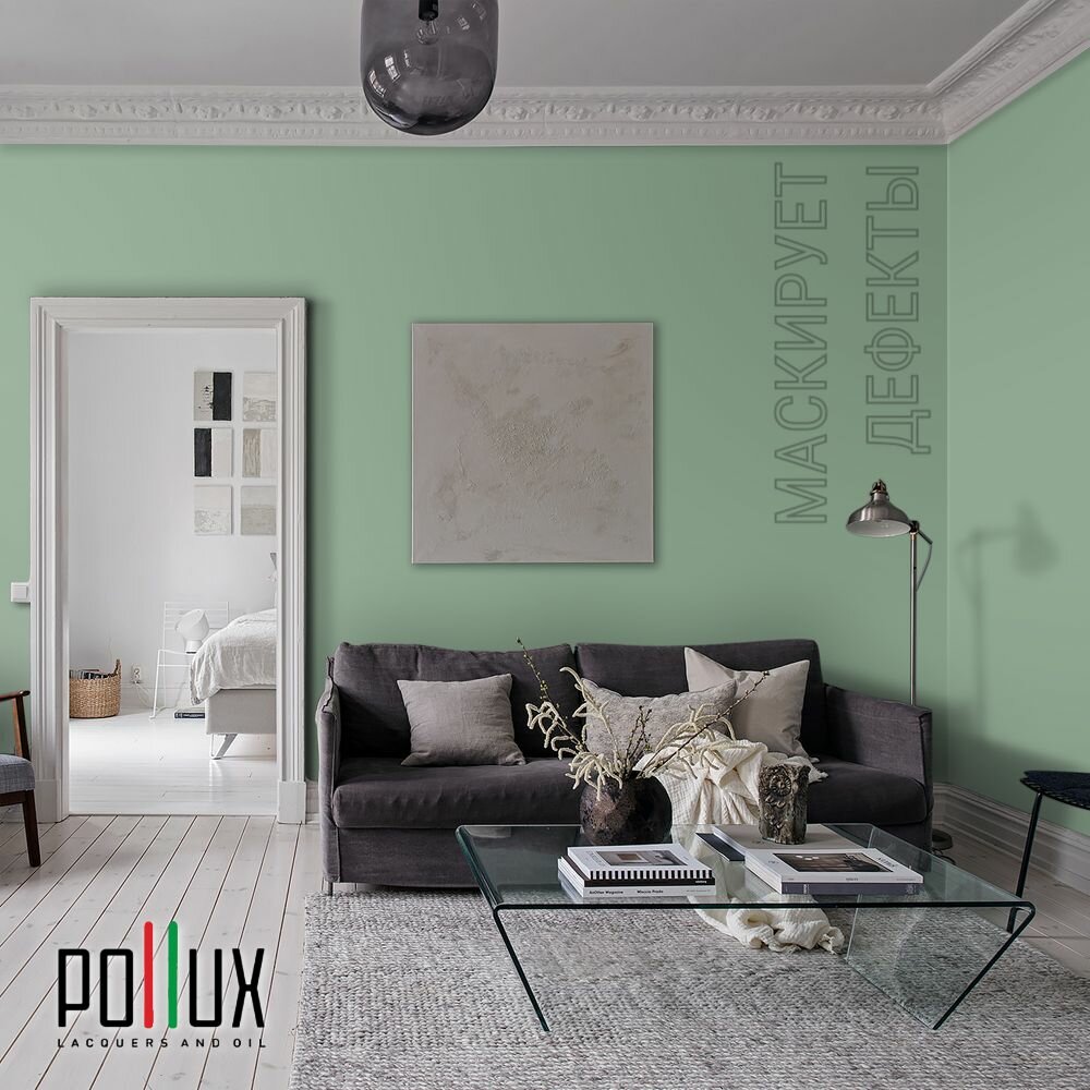Краска моющаяся интерьерная для стен и потолков, Pollux INTERIOR без запаха, быстросохнущая, акриловая, матовое покрытие, цвет NCS S 6530-G10Y, 1л.