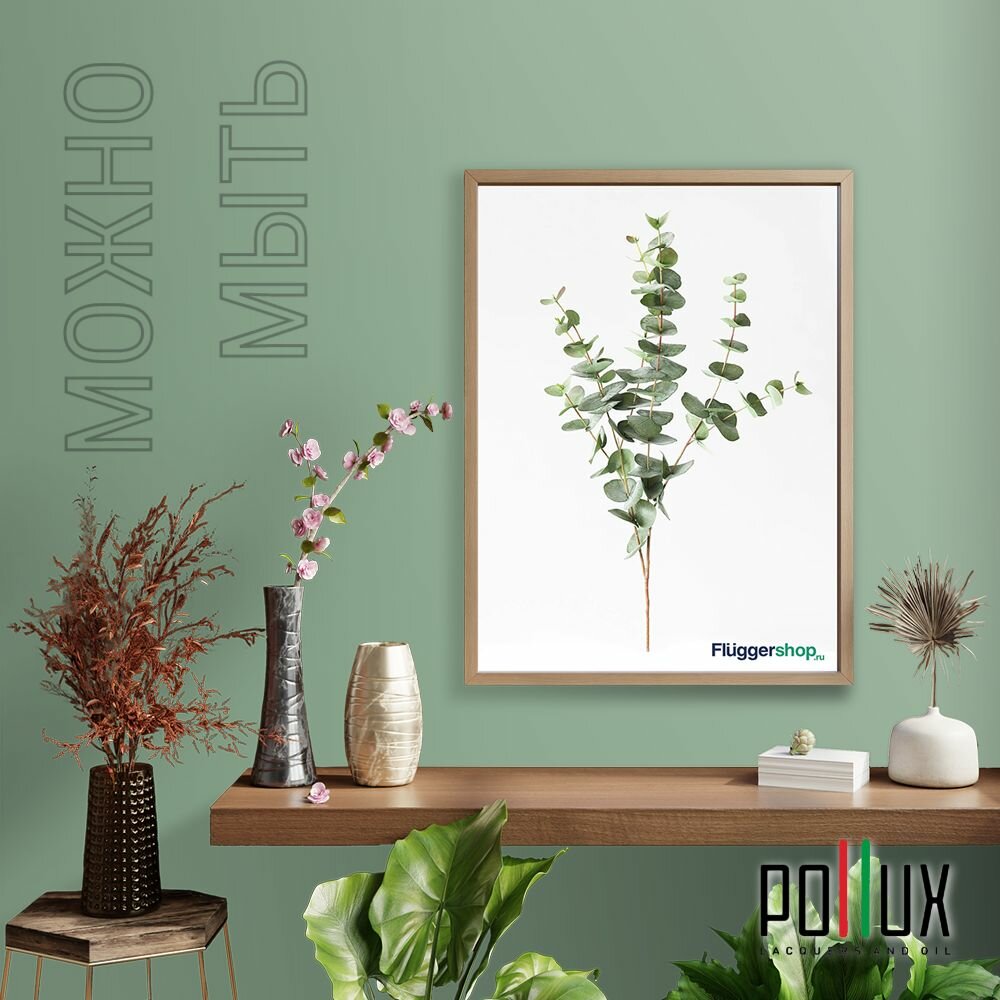 Краска моющаяся интерьерная для стен и потолков, Pollux INTERIOR без запаха, быстросохнущая, акриловая, матовое покрытие, цвет NCS S 5540-G10Y, 1л.