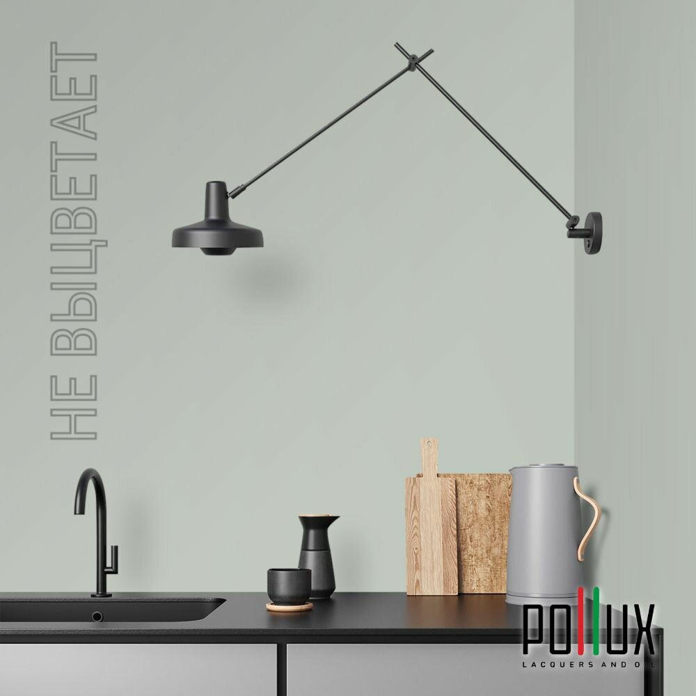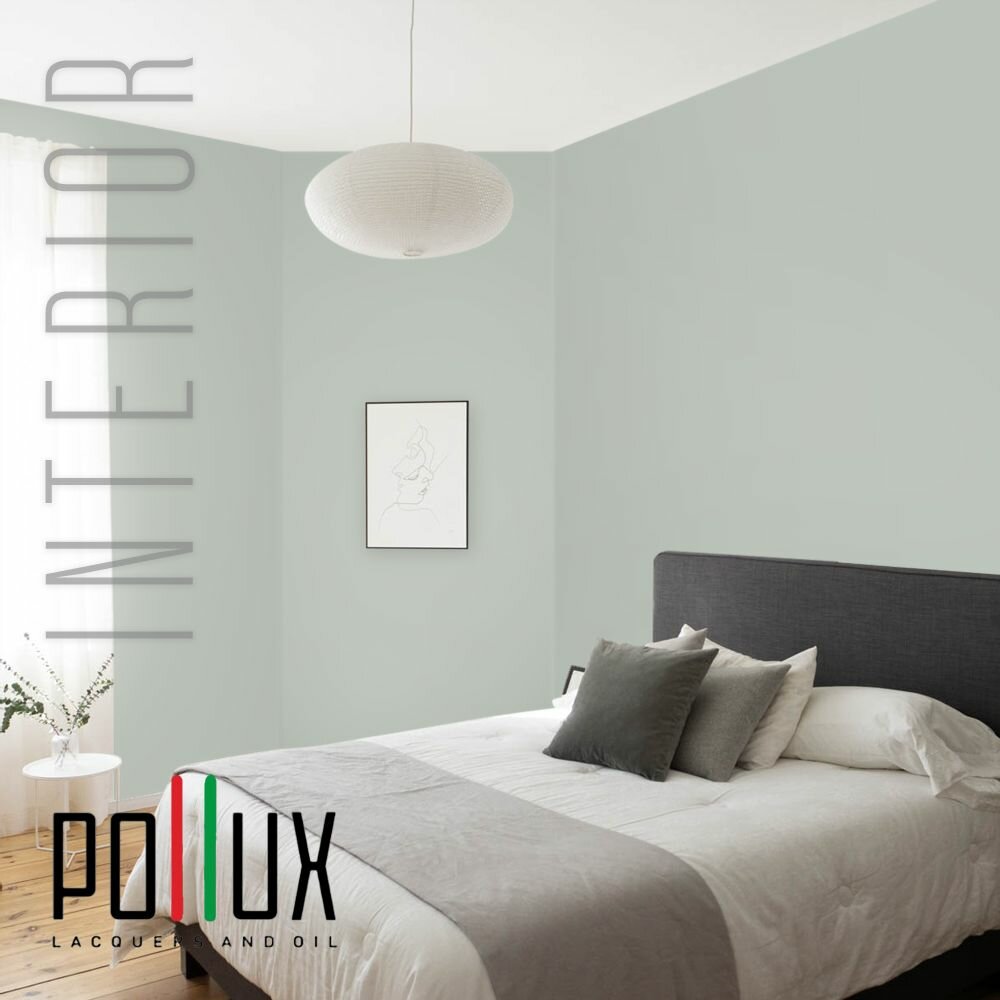 Краска моющаяся интерьерная для стен и потолков, Pollux INTERIOR без запаха, быстросохнущая, акриловая, матовое покрытие, цвет NCS S 6530-G10Y, 1л.