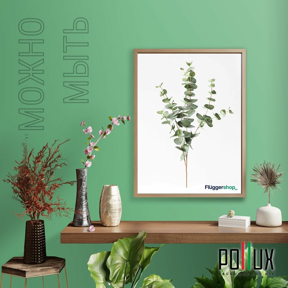 Краска моющаяся интерьерная для стен и потолков, Pollux INTERIOR без запаха, быстросохнущая, акриловая, матовое покрытие, цвет NCS S 6030-G10Y, 1л.