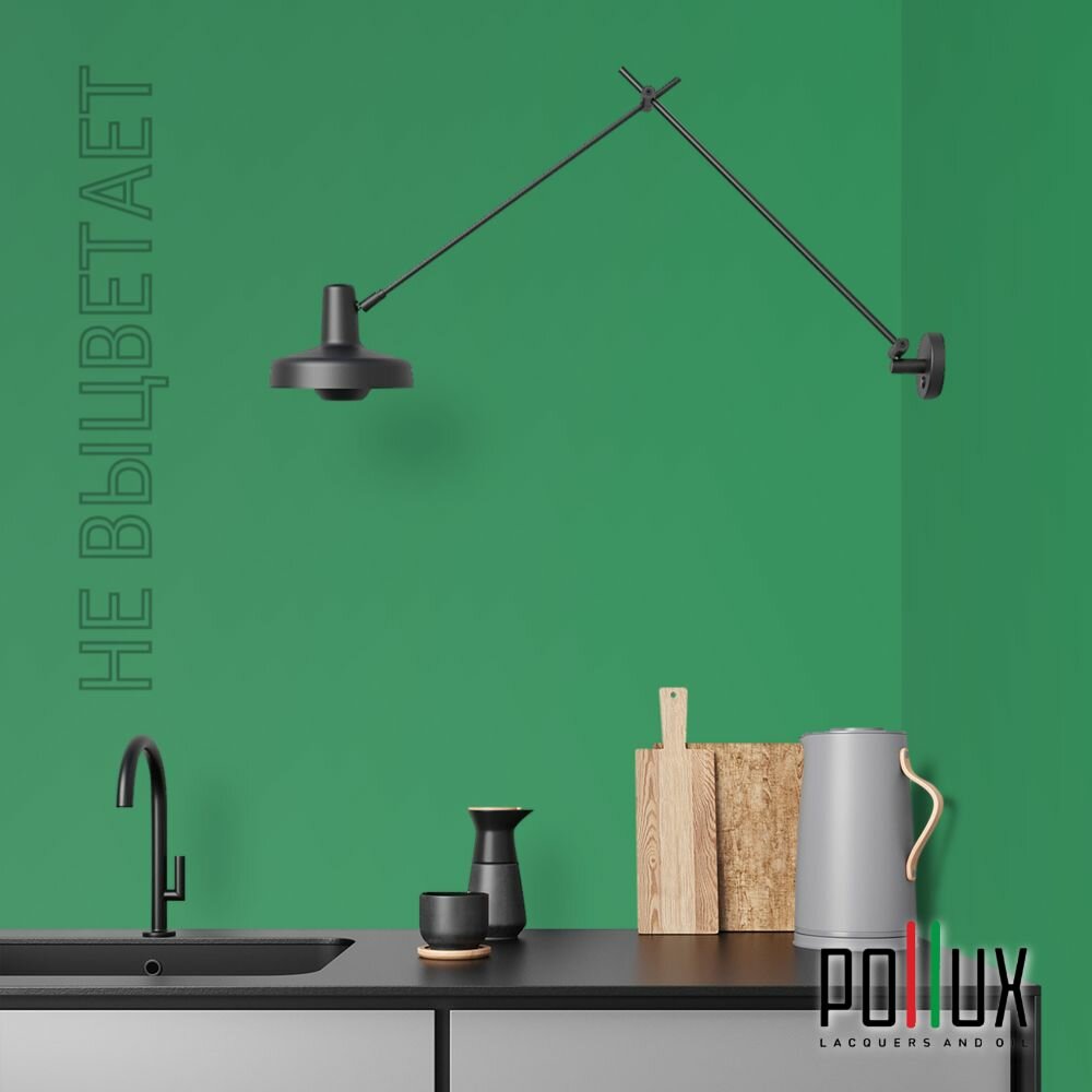 Краска моющаяся интерьерная для стен и потолков, Pollux INTERIOR без запаха, быстросохнущая, акриловая, матовое покрытие, цвет NCS S 3560-G10Y, 1л.