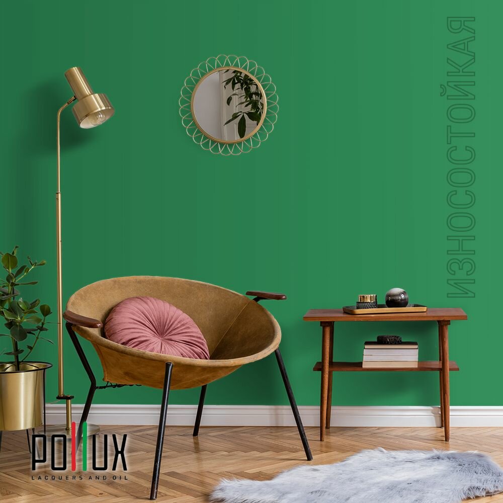 Краска моющаяся интерьерная для стен и потолков, Pollux INTERIOR без запаха, быстросохнущая, акриловая, матовое покрытие, цвет NCS S 3030-G10Y, 1л.