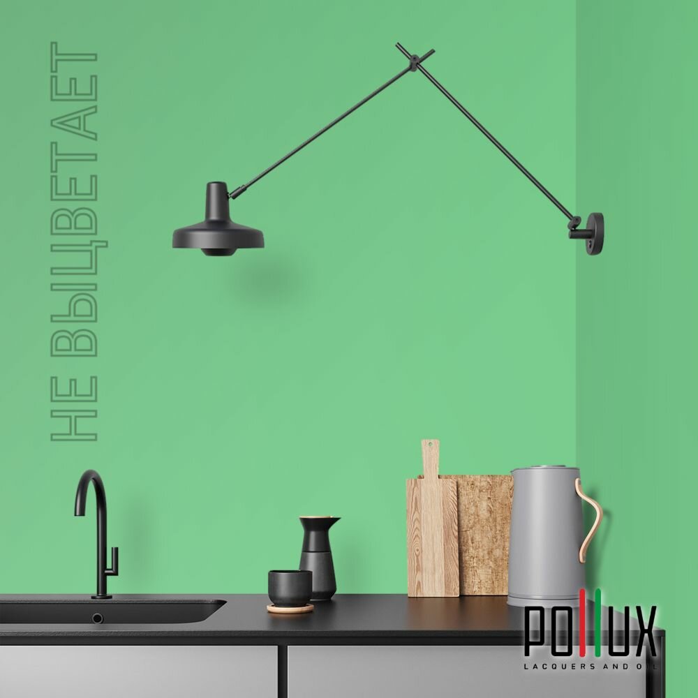 Краска моющаяся интерьерная для стен и потолков, Pollux INTERIOR без запаха, быстросохнущая, акриловая, матовое покрытие, цвет NCS S 6030-G10Y, 1л.