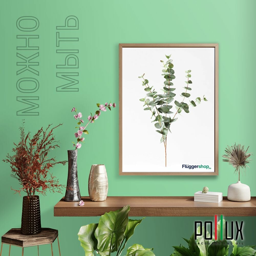 Краска моющаяся интерьерная для стен и потолков, Pollux INTERIOR без запаха, быстросохнущая, акриловая, матовое покрытие, цвет NCS S 5540-G10Y, 1л.