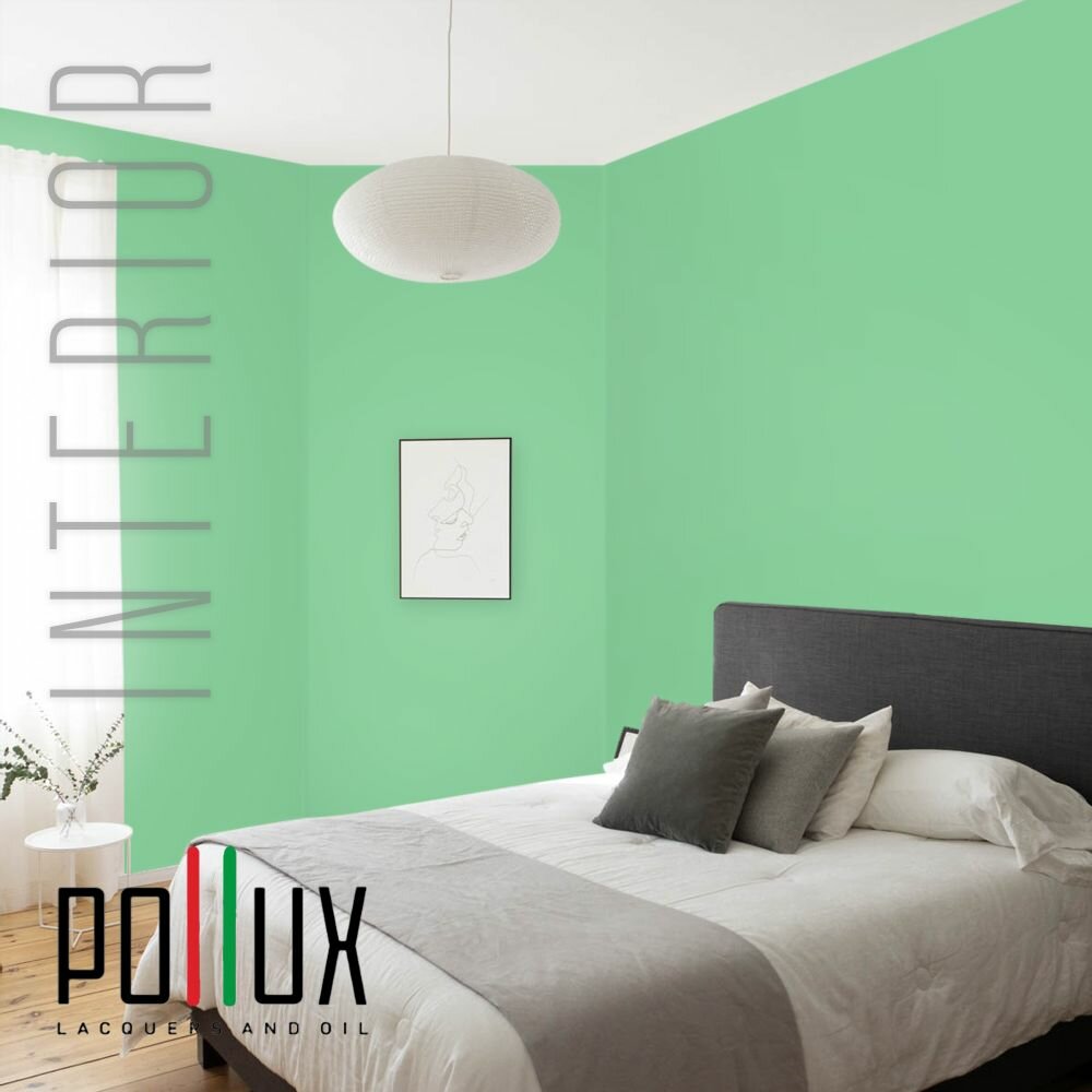 Краска моющаяся интерьерная для стен и потолков, Pollux INTERIOR без запаха, быстросохнущая, акриловая, матовое покрытие, цвет NCS S 6030-G10Y, 1л.